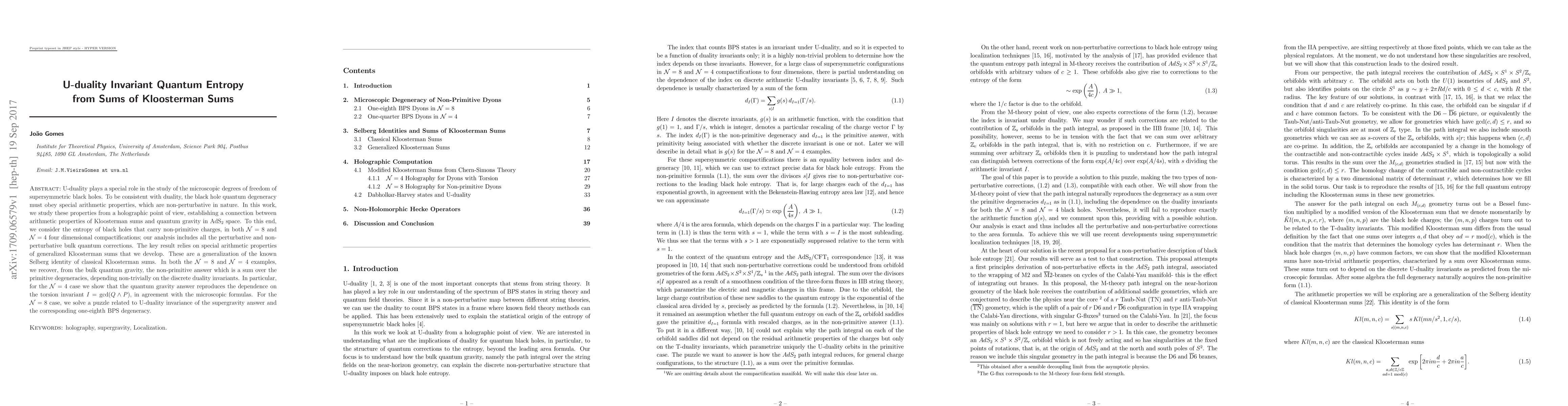 U-duality plays a special role in the study of the microscopic degrees of freedom of supersymmetric black holes. To be consistent with duality, the black hole quantum degeneracy must obey special arithmetic properties, which are non-perturbative in nature. In this work, we study these properties from a holographic point of view, establishing a connection between arithmetic properties of Kloosterman sums and quantum gravity in $\text{AdS}_2$ space. To this end, we consider the entropy of black holes that carry non-primitive charges, in both $\mathcal{N}=8$ and $\mathcal{N}=4$ four dimensional compactifications; our analysis includes all the perturbative and non-perturbative bulk quantum corrections. The key result relies on special arithmetic properties of generalized Kloosterman sums that we develop. These are a generalization of the known Selberg identity of classical Kloosterman sums. In both the $\mathcal{N}=8$ and $\mathcal{N}=4$ examples, we recover, from the bulk quantum gravity, the non-primitive answer which is a sum over the primitive degeneracies, depending non-trivially on the discrete duality invariants. In particular, for the $\mathcal{N}=4$ case we show that the quantum gravity answer reproduces the dependence on the torsion invariant $I=\text{gcd}(Q\wedge P)$, in agreement with the microscopic formulas. For the $\mathcal{N}=8$ case, we solve a puzzle related to U-duality invariance of the supergravity answer and the corresponding one-eighth BPS degeneracy.