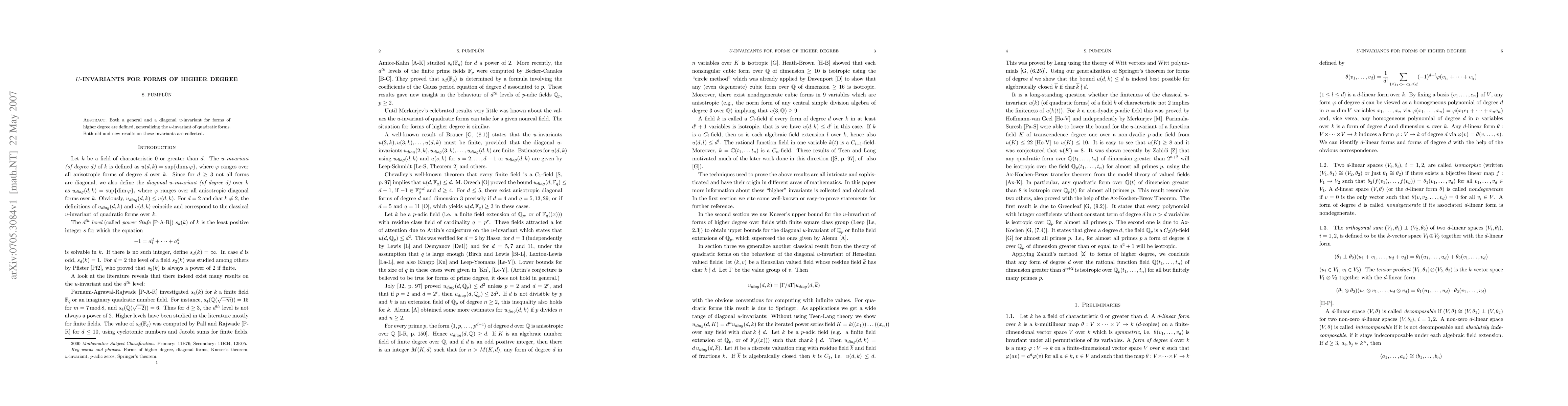 This paper defines both general and diagonal u-invariants for forms of higher degrees, extending the concept from quadratic forms. It compiles both existing and novel results related to these newly defined invariants.