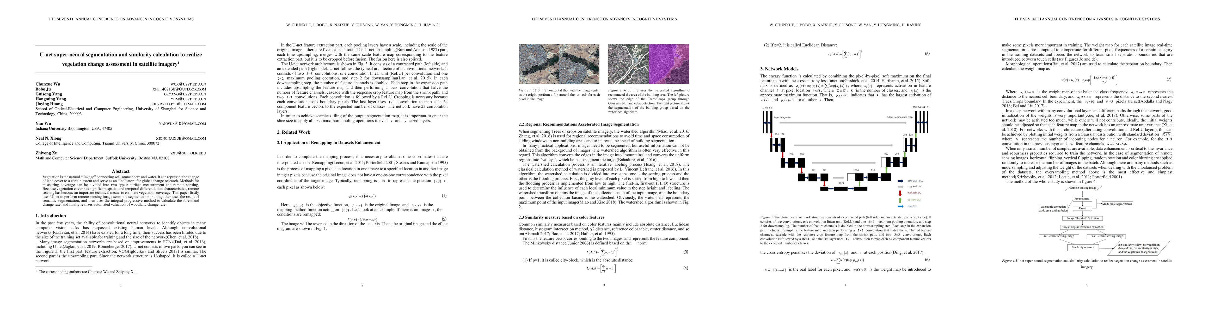 This paper employs U-net for semantic segmentation of remote sensing images to assess vegetation changes. It calculates forestland change rates using an integral progressive method to automate the valuation of woodland alterations.