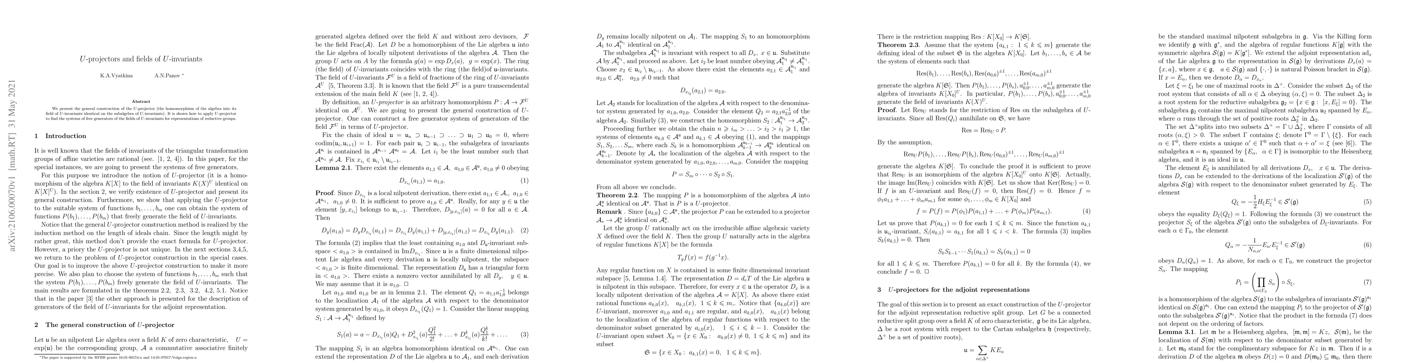 Researchers developed a method to construct U-projectors, which helps find free generators of U-invariant fields for representations of reductive groups, improving understanding of these fields.