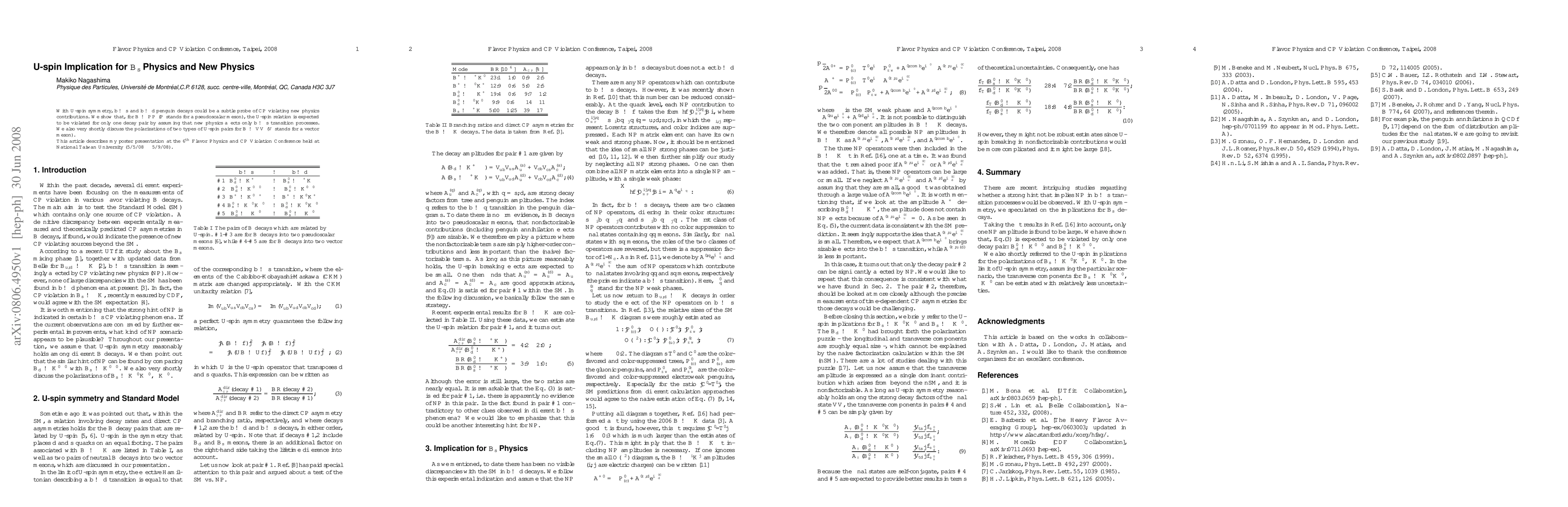 This paper explores U-spin symmetry implications for B_s physics, suggesting that b->s and b->d penguin decays can reveal subtle CP-violating new physics. It predicts U-spin relation violation in one B->PP decay under new physics affecting b->s transitions, briefly discussing polarizations in B->VV decays.