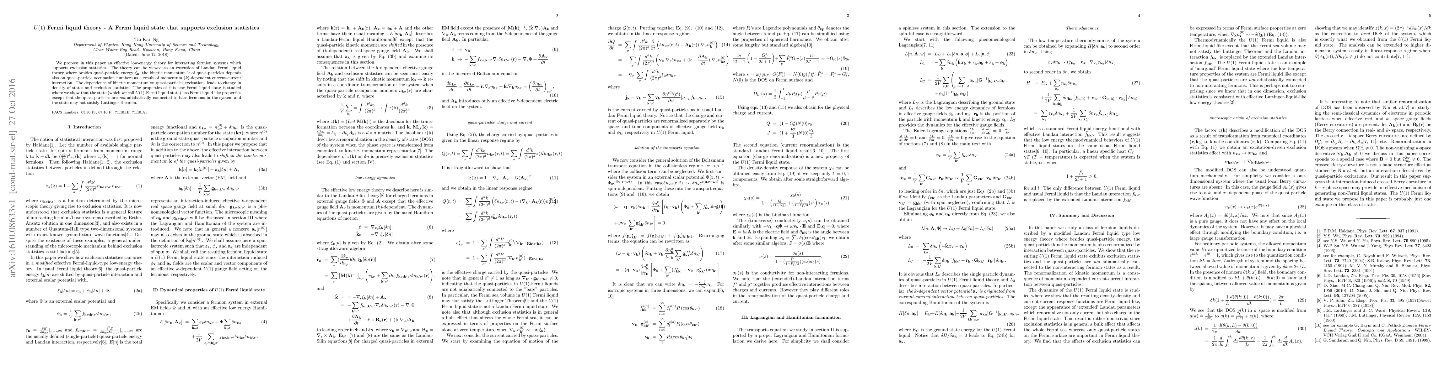 Researchers propose a new theory for interacting fermion systems that supports exclusion statistics, deviating from traditional Fermi liquid theory in its connection to quasi-particles and occupation numbers.