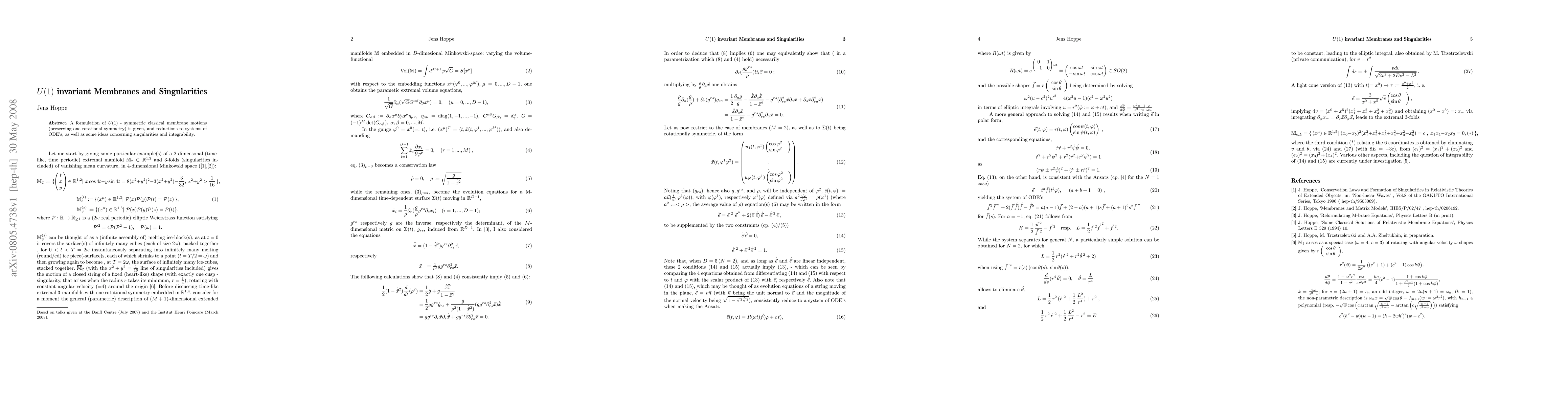 A formulation of U(1) - symmetric classical membrane motions (preserving one rotational symmetry) is given, and reductions to systems of ODE's, as well as some ideas concerning singularities and integrability.