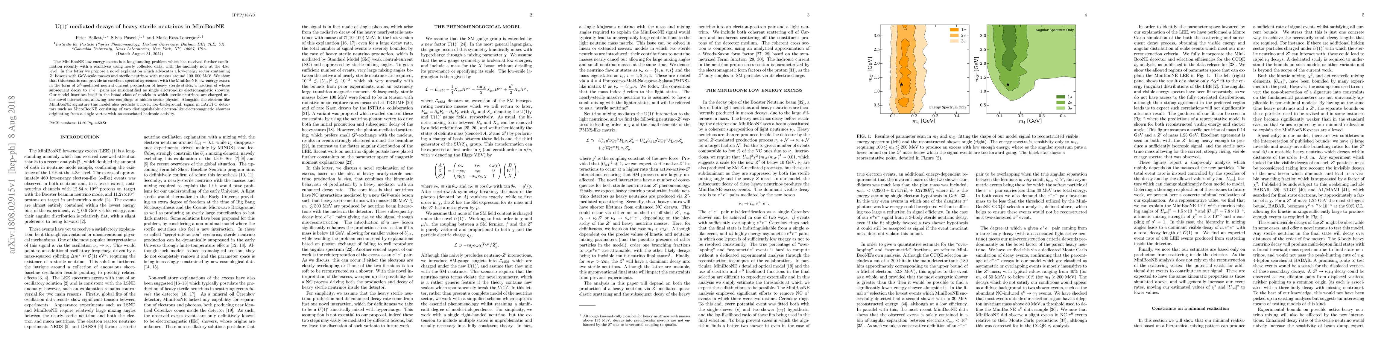 The MiniBooNE low-energy excess is a longstanding problem which has received further confirmation recently with a reanalysis using newly collected data, with the anomaly now at the $4.8\sigma$ level. In this letter we propose a novel explanation which advocates a low-energy sector containing $Z^\prime$ bosons with GeV-scale masses and sterile neutrinos with masses around $100$-$500$ MeV. We show that this scenario can provide an excellent spectral agreement with the MiniBooNE low-energy excess in the form of $Z^\prime$-mediated neutral current production of heavy sterile states, a fraction of whose subsequent decay to $e^+e^-$ pairs are misidentified as single electron-like electromagnetic showers. Our model inscribes itself in the broad class of models in which sterile neutrinos are charged under novel interactions, allowing new couplings to hidden-sector physics. Alongside the electron-like MiniBooNE signature this model also predicts a novel, low-background, signal in LArTPC detectors such as MicroBooNE consisting of two distinguishable electron-like electromagnetic showers originating from a single vertex with no associated hadronic activity.