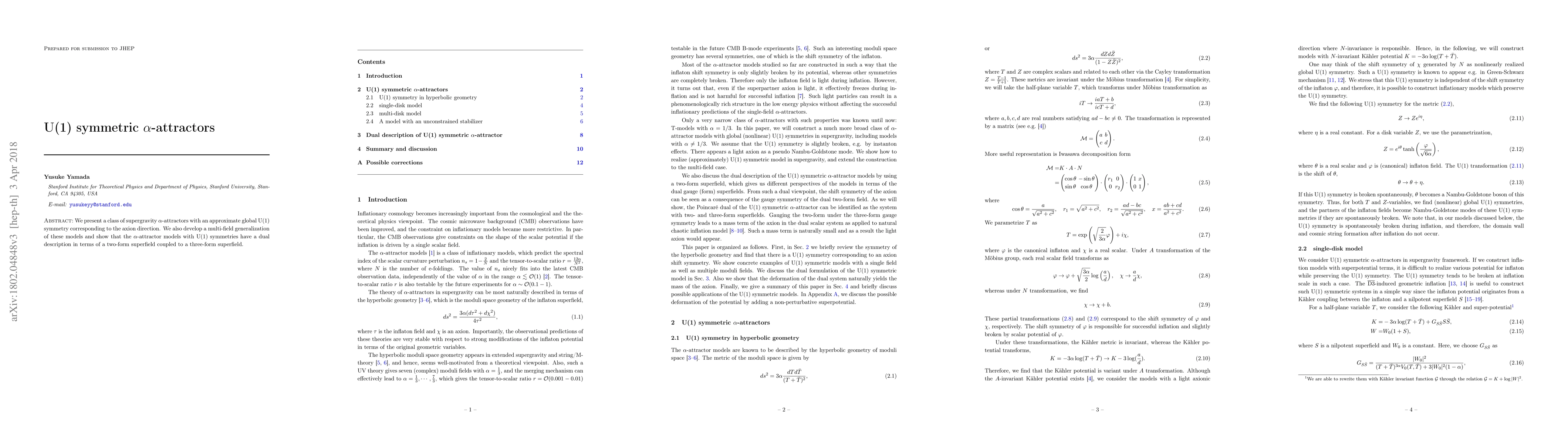 We present a class of supergravity $\alpha$-attractors with an approximate global U(1) symmetry corresponding to the axion direction. We also develop a multi-field generalization of these models and show that the $\alpha$-attractor models with U(1) symmetries have a dual description in terms of a two-form superfield coupled to a three-form superfield.
