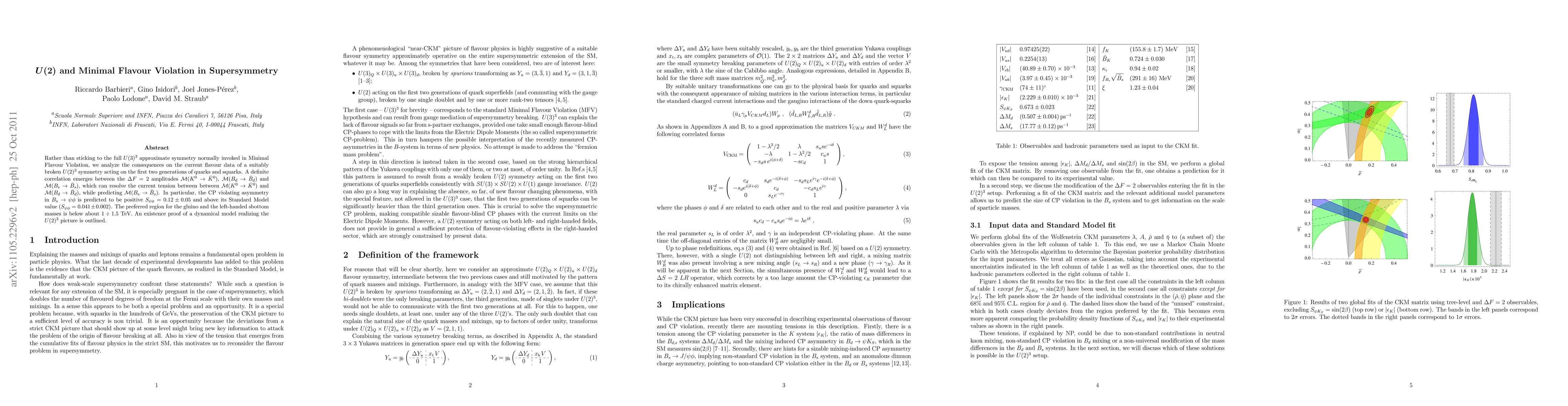 This paper explores the implications of a $U(2)^3$ symmetry for the first two generations of quarks and squarks in supersymmetry, predicting correlations between $\Delta F=2$ amplitudes that resolve tensions in current flavour data and suggesting a positive CP violating asymmetry in $B_s \to \psi \phi$ above Standard Model values. The study also indicates preferred mass ranges for gluinos and sbottoms below 1.5 TeV.