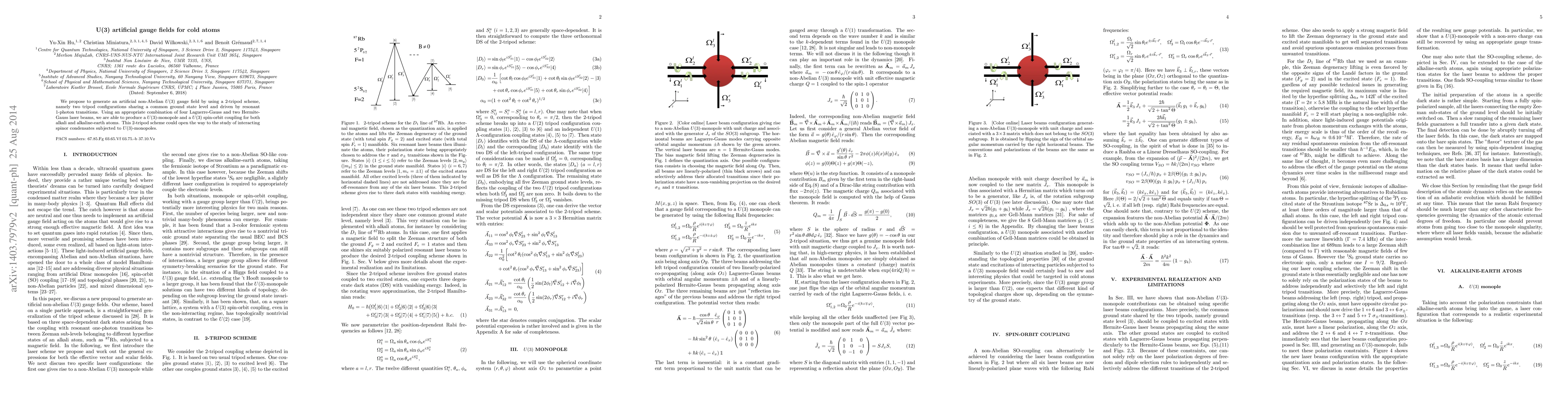 We propose to generate an artificial non-Abelian $U(3)$ gauge field by using a 2-tripod scheme, namely two tripod configurations sharing a common ground state level and driven by resonant 1-photon transitions. Using an appropriate combination of four Laguerre-Gauss and two Hermite-Gauss laser beams, we are able to produce a $U(3)$-monopole and a $U(3)$ spin-orbit coupling for both alkali and alkaline-earth atoms. This 2-tripod scheme could open the way to the study of interacting spinor condensates subjected to $U(3)$-monopoles.
