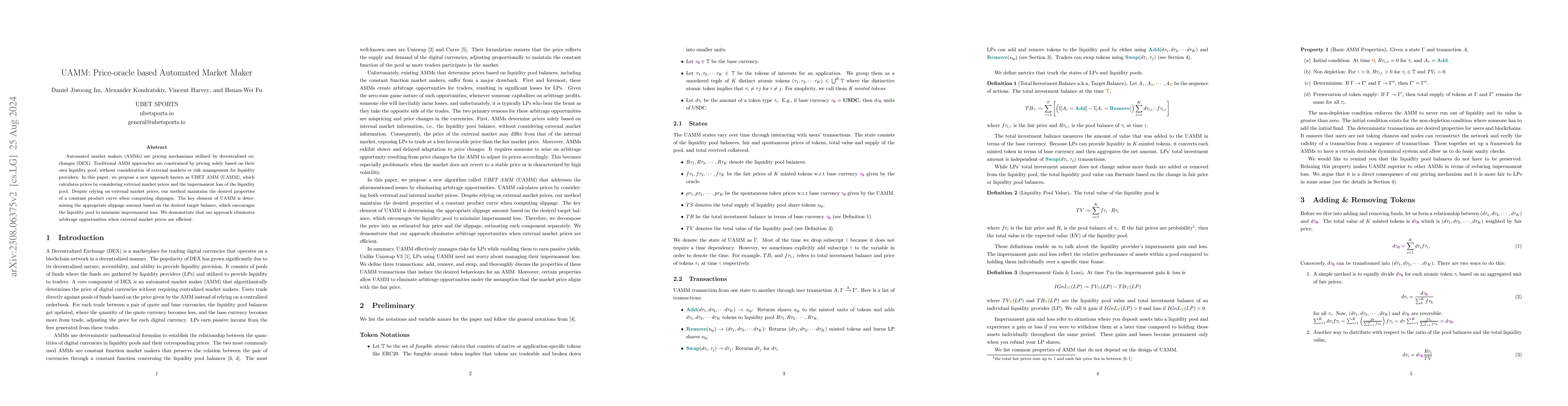 The paper introduces UBET AMM (UAMM), an innovative automated market maker that enhances decentralized exchange pricing by incorporating external market prices and impermanent loss considerations, while maintaining constant product curve properties and minimizing arbitrage opportunities. This approach determines optimal slippage for liquidity pools to reduce impermanent loss.