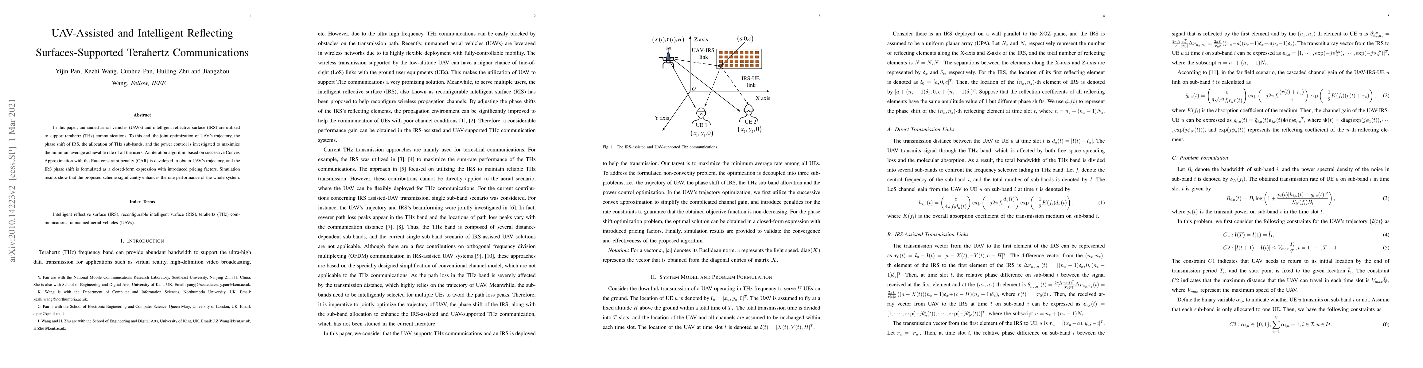 Researchers explored using drones and intelligent reflective surfaces to enhance terahertz communication rates, achieving significant improvements through joint optimization of trajectory, phase shift, sub-band allocation, and power control.