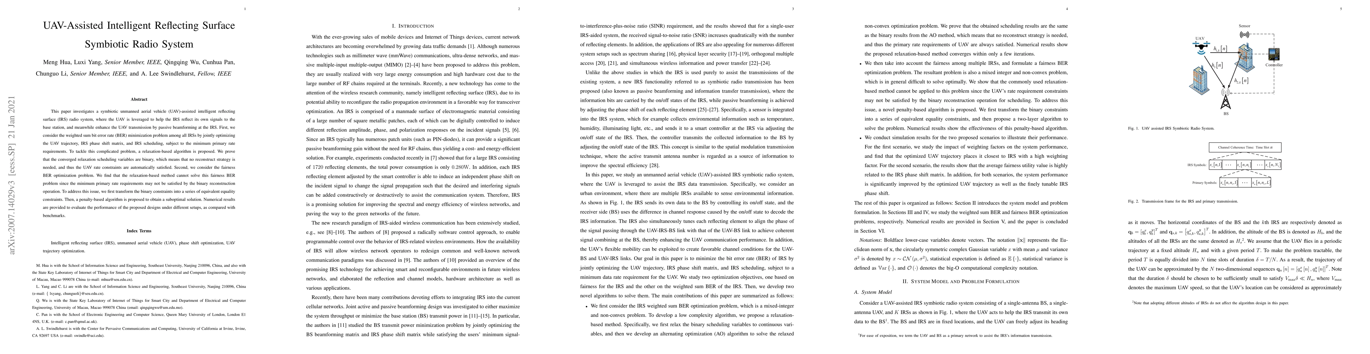 This paper explores a UAV-assisted intelligent reflecting surface (IRS) radio system where the UAV aids IRS in signal reflection to the base station while enhancing UAV transmission. It proposes a relaxation-based algorithm for optimizing UAV trajectory, IRS phase shifts, and scheduling to minimize weighted sum BER, ensuring UAV rate constraints. For fairness BER optimization, a penalty-based algorithm is developed to handle non-binary constraints.