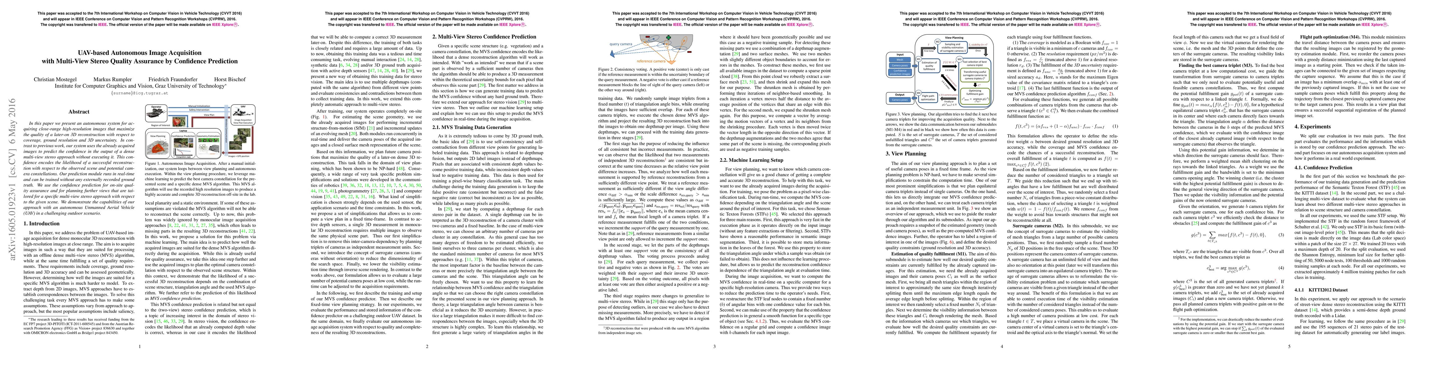 A new autonomous image acquisition system uses camera constellations to predict confidence in 3D reconstruction quality, allowing for real-time quality assurance and optimized view planning with Unmanned Aerial Vehicles (UAVs).