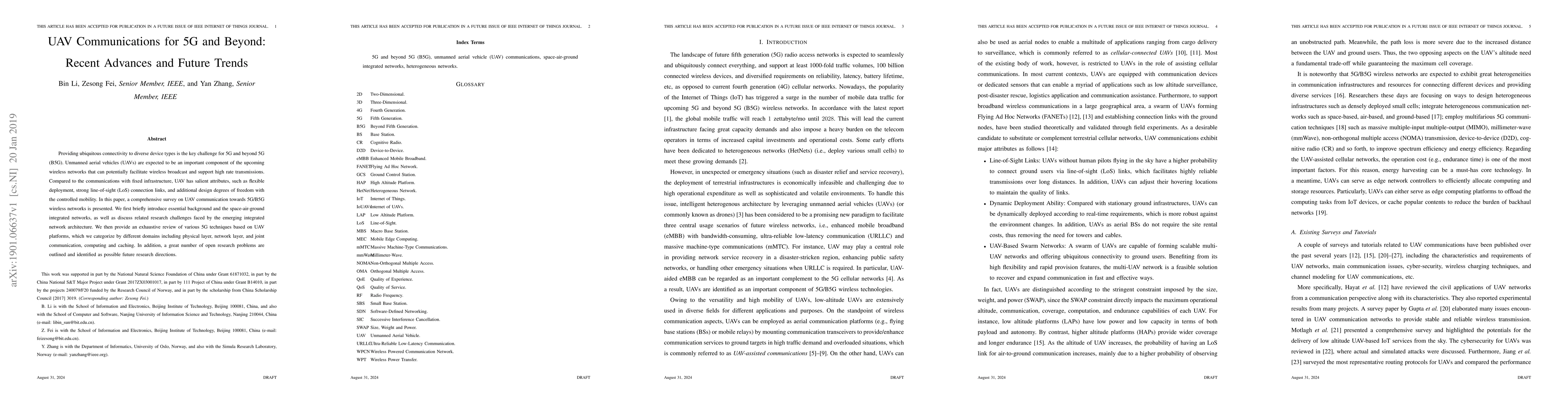 This paper surveys recent advances in UAV communications for 5G and beyond, highlighting UAVs' role in facilitating wireless broadcast and high-rate transmissions. It categorizes 5G techniques based on UAV platforms across physical, network, and joint communication layers, and identifies open research challenges and future research directions.