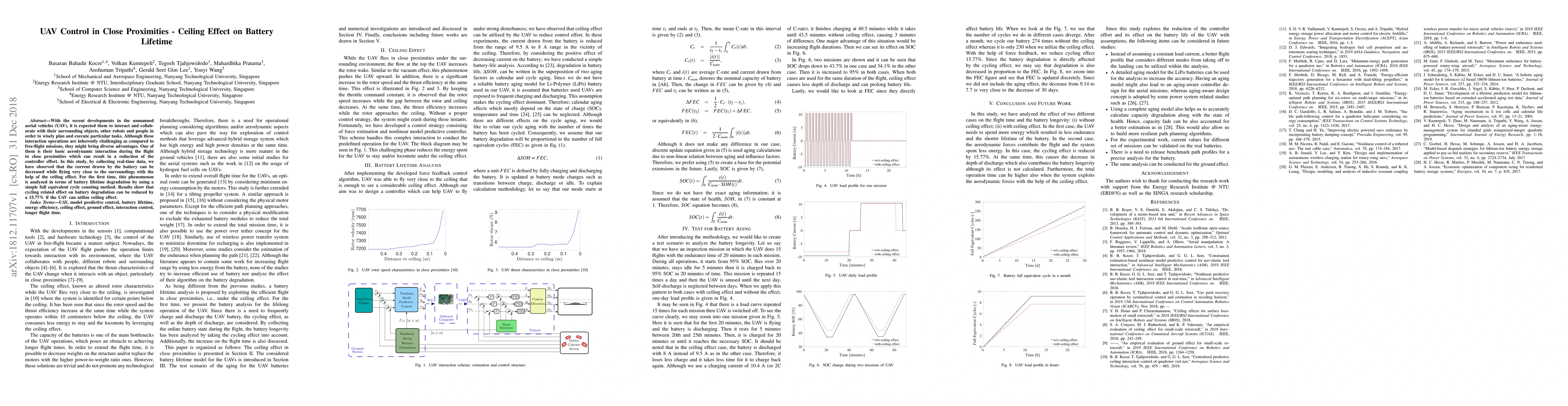 With the recent developments in the unmanned aerial vehicles (UAV), it is expected them to interact and collaborate with their surrounding objects, other robots and people in order to wisely plan and execute particular tasks. Although these interaction operations are inherently challenging as compared to free-flight missions, they might bring diverse advantages. One of them is their basic aerodynamic interaction during the flight in close proximities which can result in a reduction of the controller effort. In this study, by collecting real-time data, we have observed that the current drawn by the battery can be decreased while flying very close to the surroundings with the help of the ceiling effect. For the first time, this phenomenon is analyzed in terms of battery lifetime degradation by using a simple full equivalent cycle counting method. Results show that cycling related effect on battery degradation can be reduced by a 15.77% if the UAV can utilize ceiling effect.