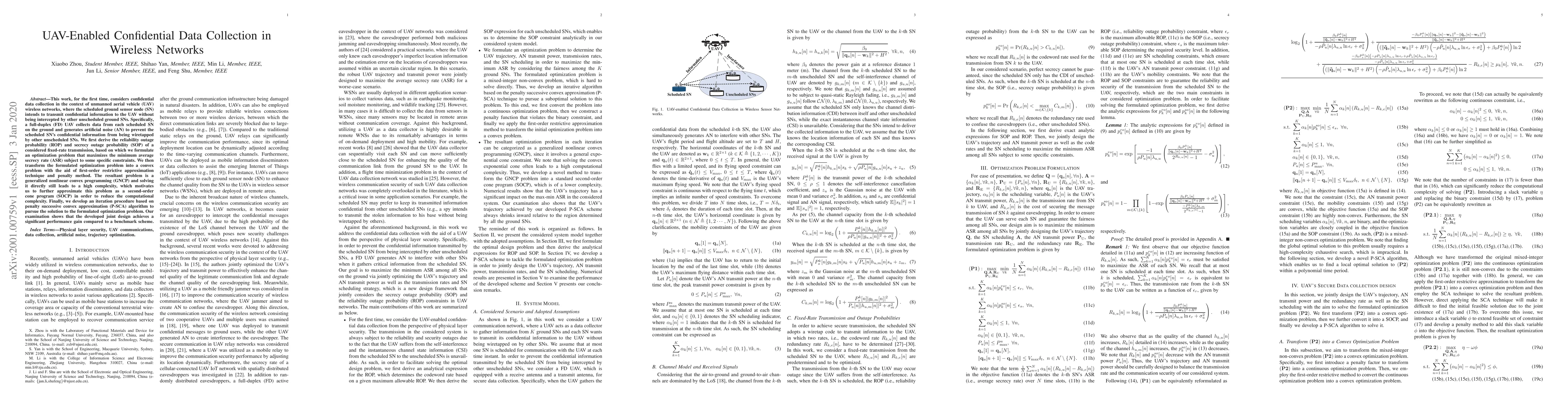 This paper introduces a novel UAV-enabled wireless network system for confidential data collection, where a full-duplex UAV collects data from scheduled ground sensor nodes while generating artificial noise to prevent eavesdropping by unscheduled nodes. The authors formulate an optimization problem to maximize the minimum average secrecy rate, transforming it into a tractable second-order cone program and solving it using a penalty successive convex approximation algorithm, demonstrating significant performance gains over benchmark schemes.