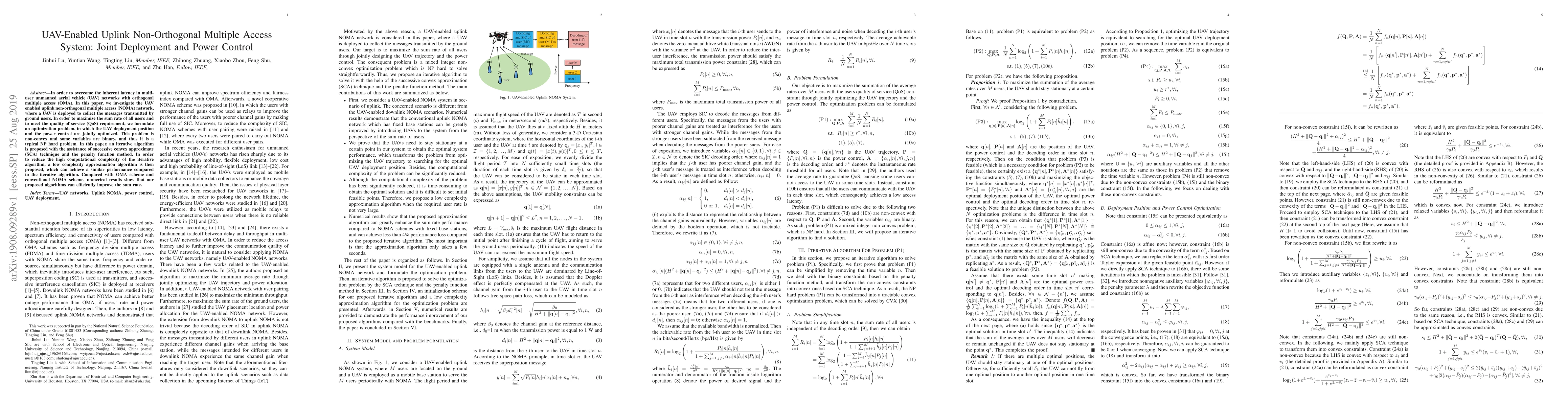 This paper proposes an optimization framework for UAV-enabled uplink NOMA networks to maximize sum rate and meet QoS requirements by jointly optimizing UAV deployment and power control. An iterative algorithm with SCA and penalty function methods is developed, and a low complexity approximation algorithm is also introduced to achieve similar performance with reduced computational complexity.