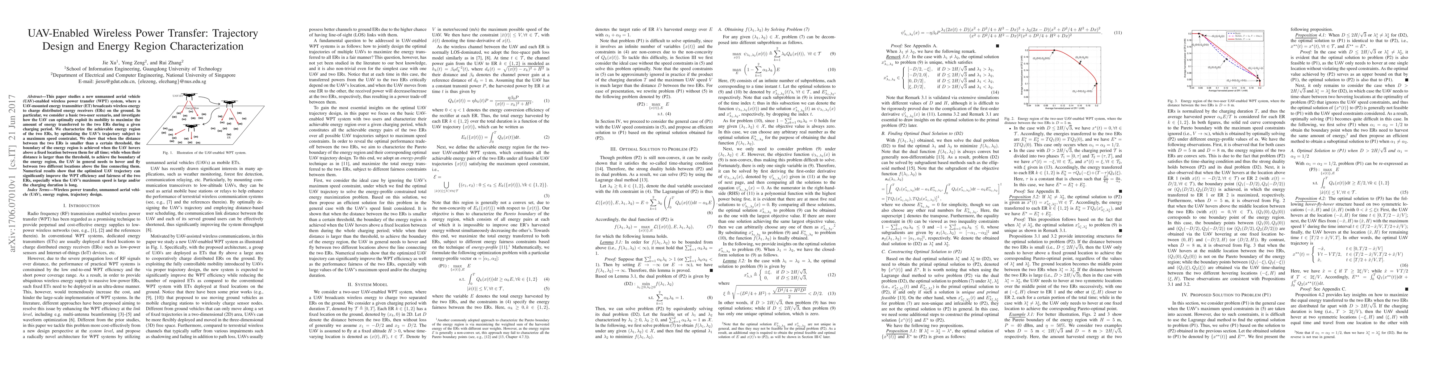 This paper explores the optimization of UAV-enabled wireless power transfer (WPT) systems, focusing on the UAV's trajectory to maximize energy transfer to two ground receivers. It characterizes the achievable energy region by optimizing the UAV's path under speed constraints, revealing distinct hovering strategies based on the distance between receivers.