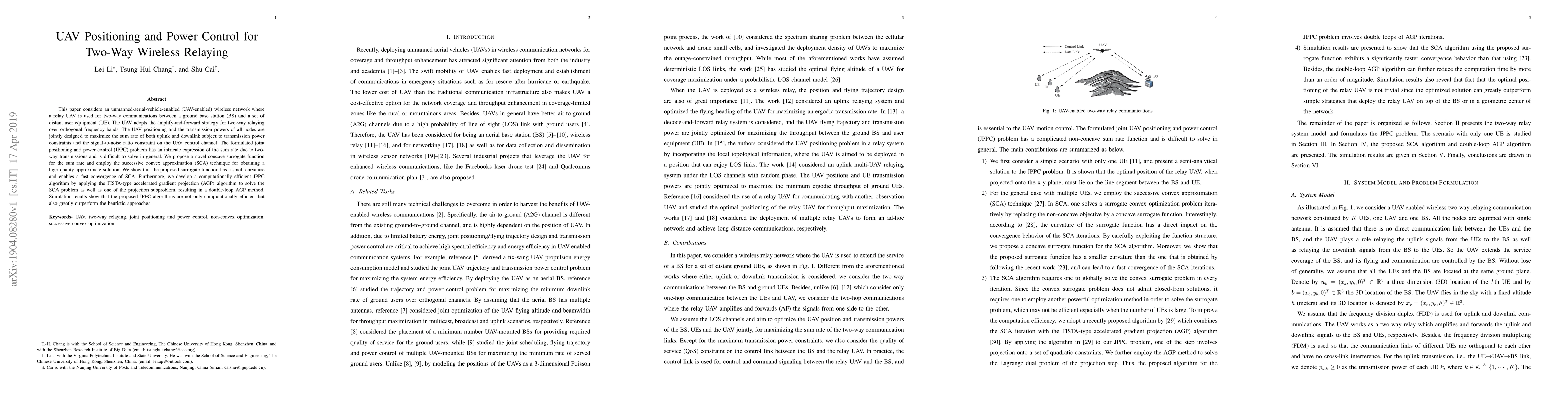 This paper considers an unmanned-aerial-vehicle-enabled (UAV-enabled) wireless network where a relay UAV is used for two-way communications between a ground base station (BS) and a set of distant user equipment (UE). The UAV adopts the amplify-and-forward strategy for two-way relaying over orthogonal frequency bands. The UAV positioning and the transmission powers of all nodes are jointly designed to maximize the sum rate of both uplink and downlink subject to transmission power constraints and the signal-to-noise ratio constraint on the UAV control channel. The formulated joint positioning and power control (JPPC) problem has an intricate expression of the sum rate due to two-way transmissions and is difficult to solve in general. We propose a novel concave surrogate function for the sum rate and employ the successive convex approximation (SCA) technique for obtaining a high-quality approximate solution. We show that the proposed surrogate function has a small curvature and enables a fast convergence of SCA. Furthermore, we develop a computationally efficient JPPC algorithm by applying the FISTA-type accelerated gradient projection (AGP) algorithm to solve the SCA problem as well as one of the projection subproblem, resulting in a double-loop AGP method. Simulation results show that the proposed JPPC algorithms are not only computationally efficient but also greatly outperform the heuristic approaches.