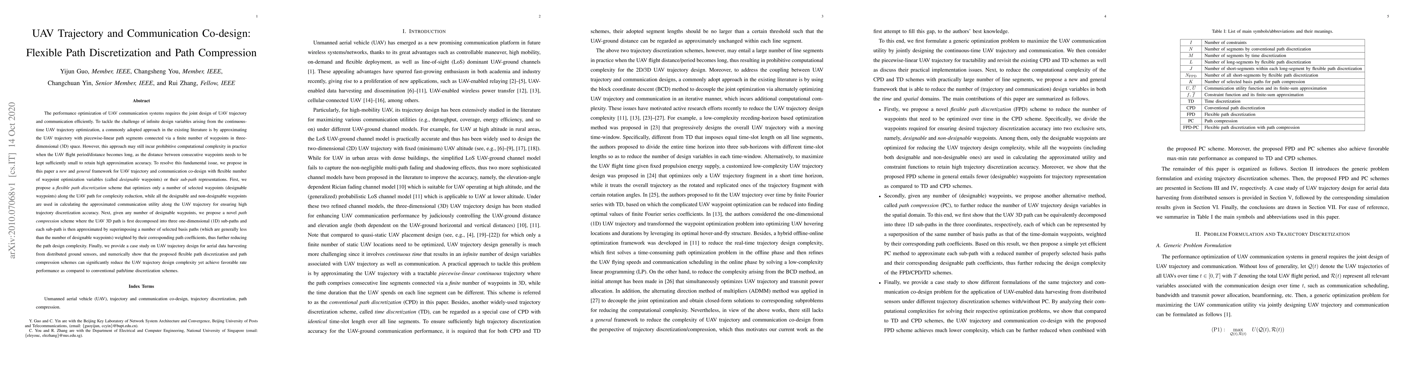 This paper presents a framework for optimizing UAV trajectory and communication systems by introducing flexible path discretization and path compression techniques. The proposed methods reduce computational complexity while maintaining high accuracy in trajectory approximation and communication utility calculation.