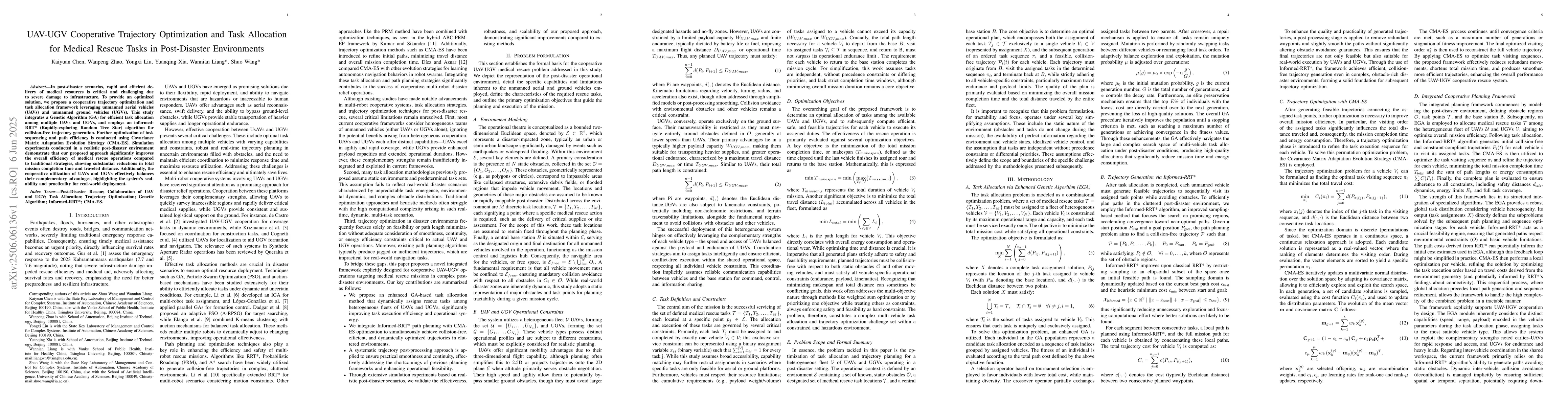 A new framework optimizes medical rescue operations in post-disaster environments by combining UAVs and UGVs for efficient task allocation and trajectory planning, reducing mission completion time and distance.