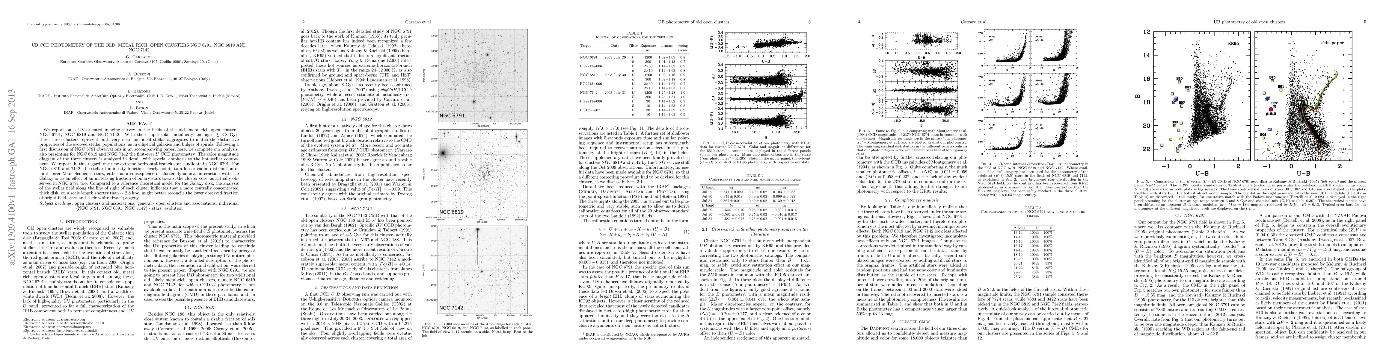 This study presents UB CCD photometry of the old, metal-rich open clusters NGC 6791, NGC 6819, and NGC 7142, focusing on their color-magnitude diagrams (CMD) and the hot stellar component. A new extreme horizontal-branch star candidate was identified in NGC 6791, while the luminosity function suggests a looser distribution of faint lower Main Sequence stars in NGC 6819 and NGC 7142, possibly due to dynamical interactions or binary star effects.