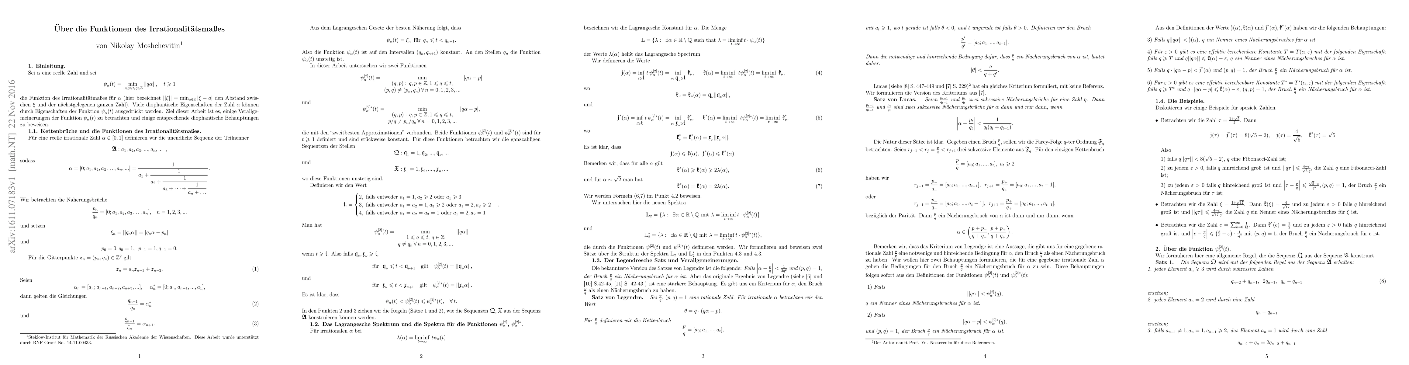 We study two irrationality measure functions $\psi_\alpha^{[2]} (t) $ and $\psi_\alpha^{[2]*} (t)$ related to the "second best" approximations to a real numbers and prove some results on the structure of the corresponding Diophantine spectra. It happened that the first two elements of the spectrum for the function $\psi_\alpha^{[2]*} (t)$ are associated with the numbers $\frac{1+\sqrt{5}}{2}$ and $e =\sum_{n=0}^\infty \frac{1}{n!}$.