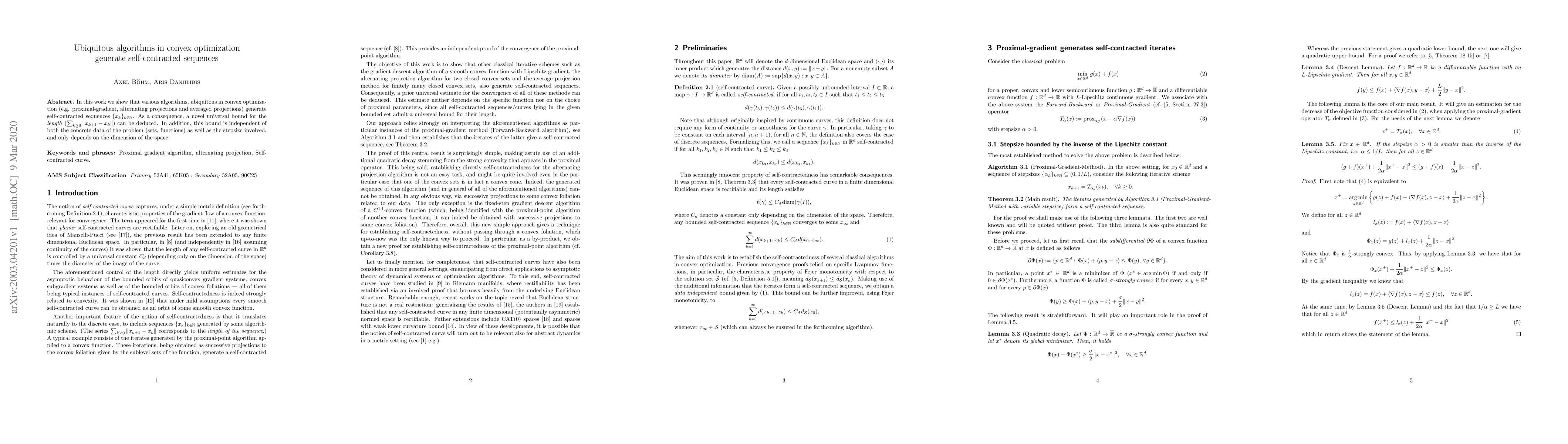 In this work we show that various algorithms, ubiquitous in convex optimization (e.g. proximal-gradient, alternating projections and averaged projections) generate self-contracted sequences $\{x_{k}\}_{k\in\mathbb{N}}$. As a consequence, a novel universal bound for the \emph{length} ($\sum_{k\ge 0}\Vert x_{k+1}-x_k\Vert$) can be deduced. In addition, this bound is independent of both the concrete data of the problem (sets, functions) as well as the stepsize involved, and only depends on the dimension of the space.