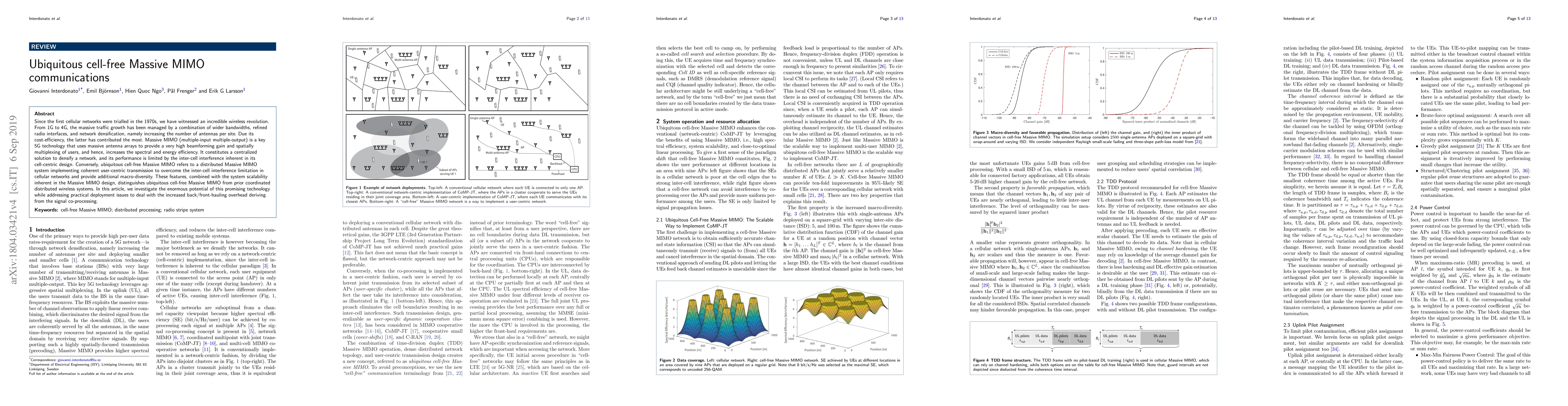 This paper explores the potential of ubiquitous cell-free Massive MIMO, a distributed system that leverages user-centric transmission to overcome inter-cell interference and enhance macro-diversity. It addresses practical deployment challenges, particularly the increased back/front-hauling overhead from signal co-processing.
