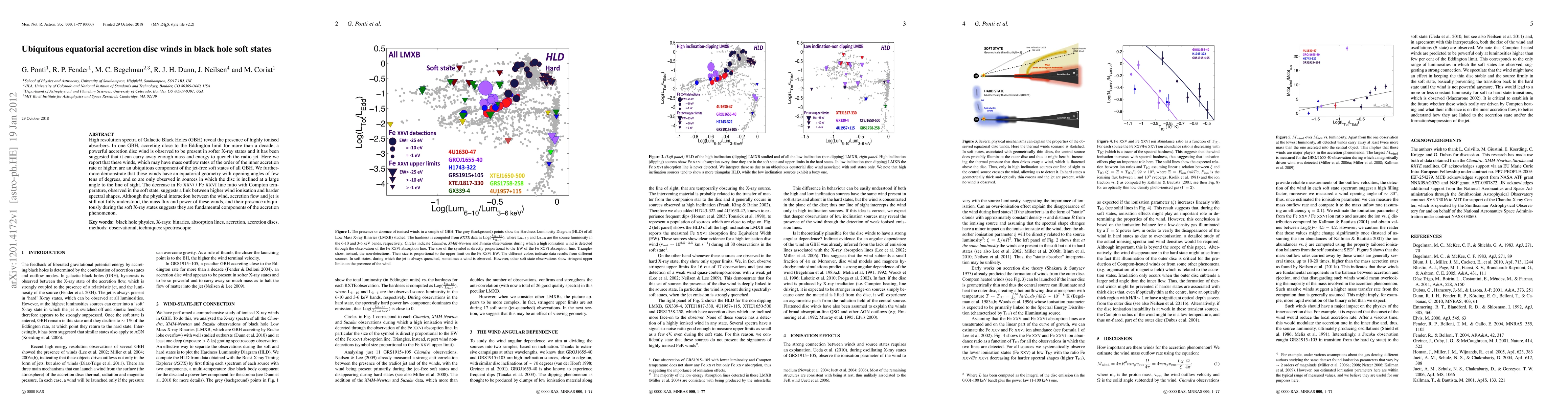 High resolution spectra of Galactic Black Holes (GBH) reveal the presence of highly ionised absorbers. In one GBH, accreting close to the Eddington limit for more than a decade, a powerful accretion disc wind is observed to be present in softer X-ray states and it has been suggested that it can carry away enough mass and energy to quench the radio jet. Here we report that these winds, which may have mass outflow rates of the order of the inner accretion rate or higher, are an ubiquitous component of the jet-free soft states of all GBH. We furthermore demonstrate that these winds have an equatorial geometry with opening angles of few tens of degrees, and so are only observed in sources in which the disc is inclined at a large angle to the line of sight. The decrease in Fe XXV / Fe XXVI line ratio with Compton temperature, observed in the soft state, suggests a link between higher wind ionisation and harder spectral shapes. Although the physical interaction between the wind, accretion flow and jet is still not fully understood, the mass flux and power of these winds, and their presence ubiquitously during the soft X-ray states suggests they are fundamental components of the accretion phenomenon.