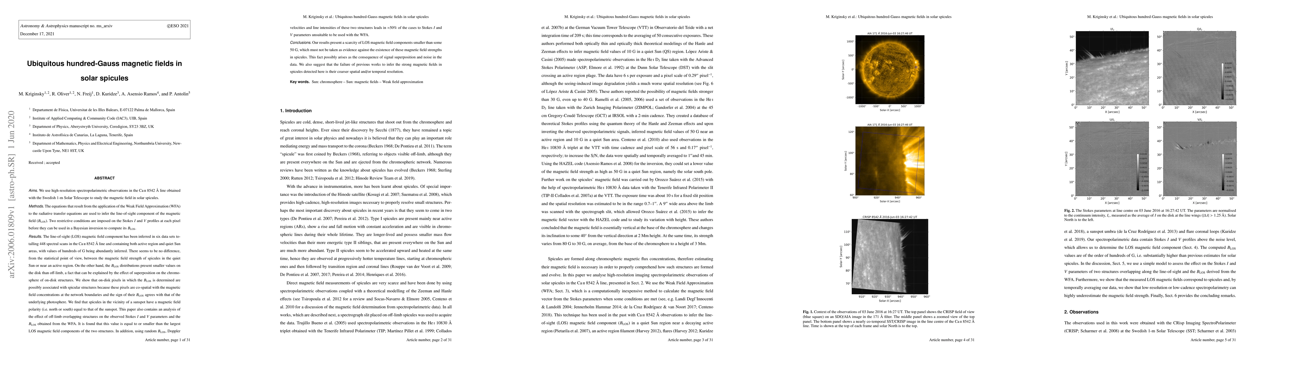 This research uses high-resolution observations in the Ca ii 8542 A line to find that solar spicules, both in quiet Sun and near active regions, consistently exhibit magnetic field strengths of hundreds of Gauss. The study reveals no significant difference in magnetic field strength between these areas and highlights that off-disk structures' superposition can underestimate on-disk magnetic field strengths. The methodology involves a Bayesian inversion applying Weak Field Approximation (WFA) to radiative transfer equations, with key findings emphasizing the ubiquity of strong magnetic fields in spicules and the impact of chromospheric structure superposition on measurements.