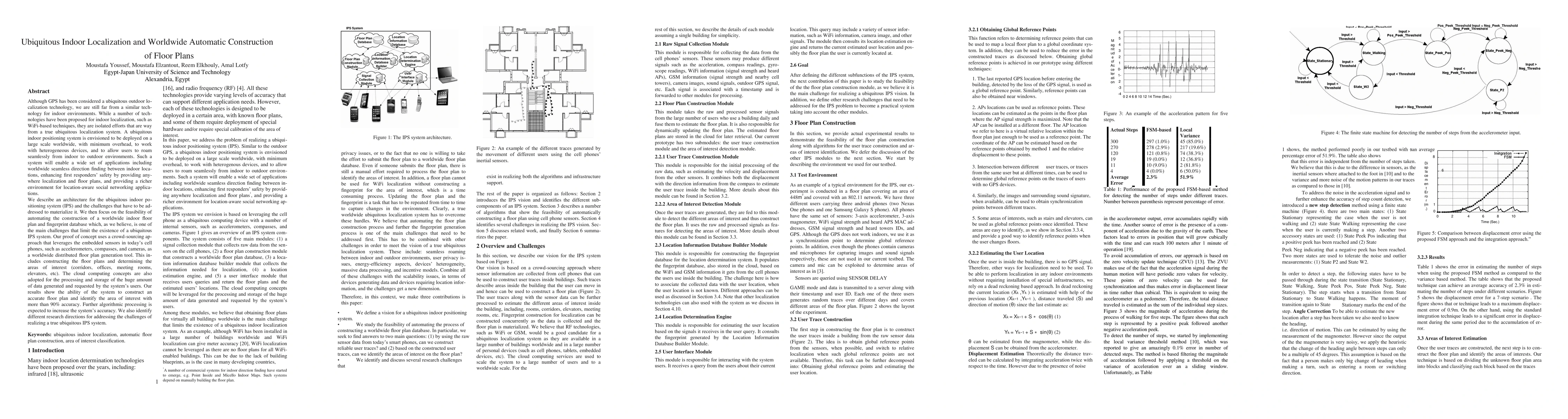 This paper proposes an architecture for a ubiquitous indoor positioning system (IPS) aiming for seamless indoor-outdoor navigation and discusses the challenges in its realization. It introduces a crowd-sourced approach leveraging mobile phone sensors to automatically construct worldwide indoor floor plans, achieving over 90% accuracy, and utilizes cloud computing for data management.