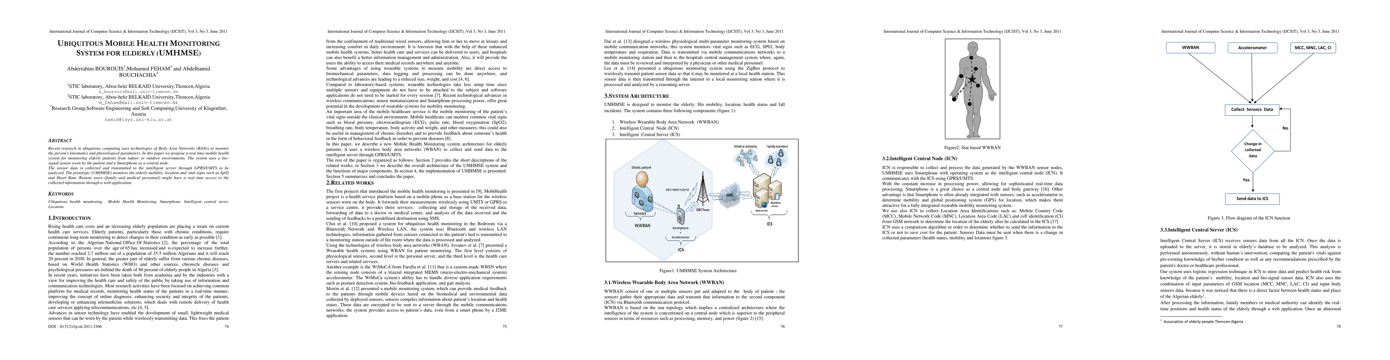 This paper proposes a real-time mobile health monitoring system for elderly patients using Body Area Networks (BANs) and bio-signal sensors, transmitting data via GPRS/UMTS to an intelligent server for analysis. The system enables remote monitoring of mobility, location, and vital signs like Sp02 and Heart Rate through a web application accessible to family and medical personnel.