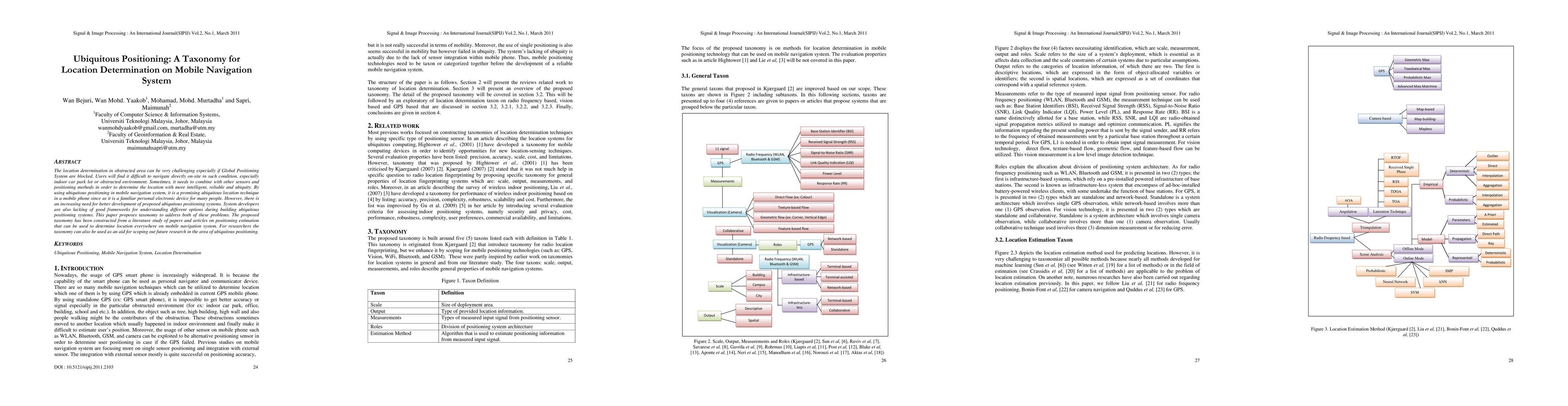 The paper proposes a taxonomy for location determination on mobile navigation systems, constructed through a literature study of positioning estimation papers and articles.
