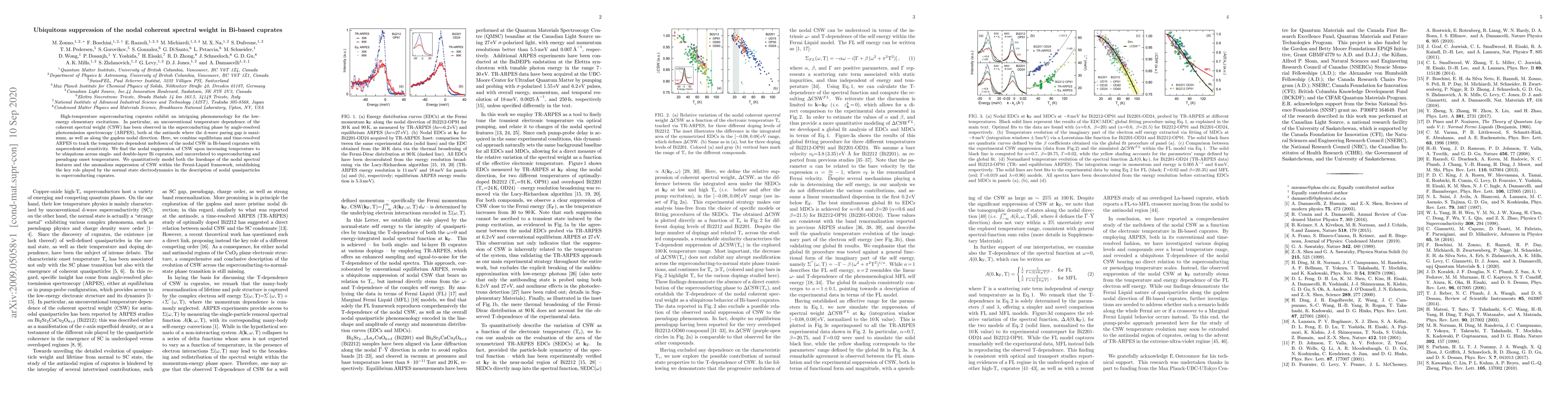 This study reveals the ubiquitous suppression of nodal coherent spectral weight in Bi-based cuprates using ARPES, showing that this phenomenon occurs across single- and double-layer systems and is independent of superconducting and pseudogap onset temperatures. The findings are modeled within the Fermi-Liquid framework, highlighting the influence of normal state electrodynamics on nodal quasiparticles in superconducting cuprates.