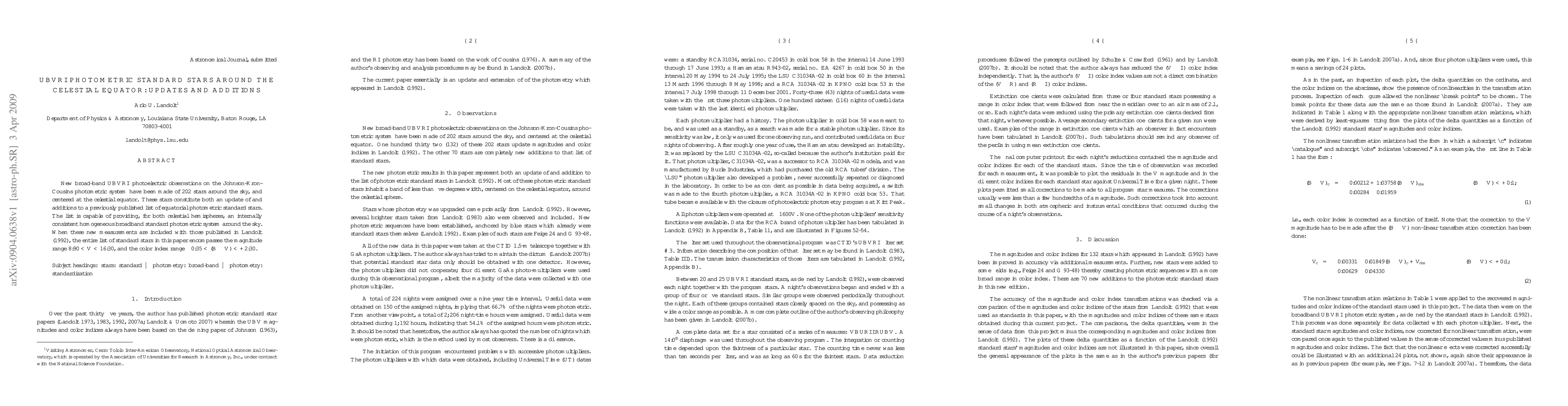 This paper presents new UBVRI photoelectric observations of 202 stars near the celestial equator, updating and expanding a previous list of photometric standard stars. The combined dataset now covers a wide magnitude and color index range, providing a consistent broadband photometric system for both celestial hemispheres.