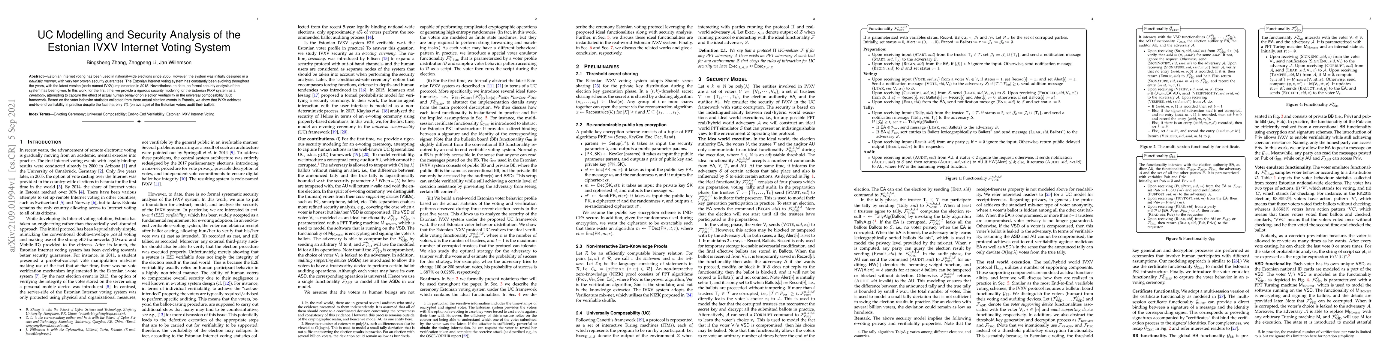 The paper presents a UC-secure model for the Estonian IVXV system, incorporating voter behavior statistics and ensuring end-to-end verifiability.