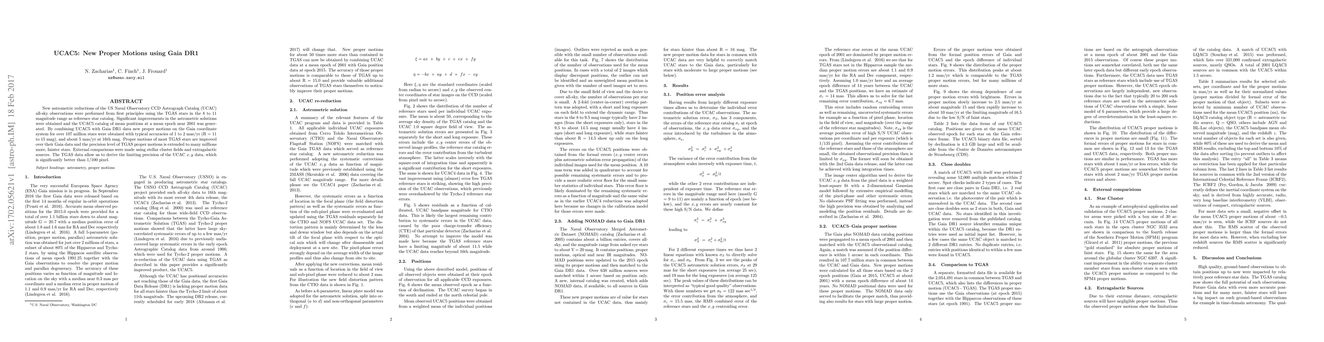 Development of new astrometric reductions using TGAS stars as reference, significantly improving UCAC5 astrometric solutions and generating a high-precision proper motion catalog.