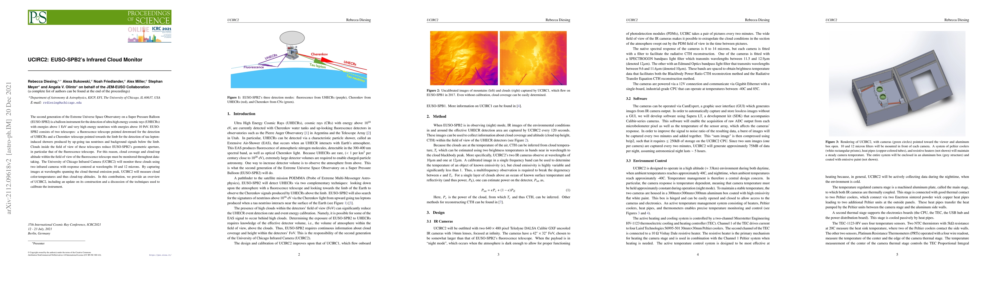 The second generation of the Extreme Universe Space Observatory on a Super Pressure Balloon (EUSO-SPB2) is a balloon instrument for the detection of ultra high energy cosmic rays (UHECRs) with energies above 1 EeV and very high energy neutrinos with energies above 10 PeV. EUSO-SPB2 consists of two telescopes: a fluorescence telescope pointed downward for the detection of UHECRs and a Cherenkov telescope pointed towards the limb for the detection of tau lepton-induced showers produced by up-going tau neutrinos and background signals below the limb. Clouds inside the field of view of these telescopes reduce EUSO-SPB2's geometric aperture, in particular that of the fluorescence telescope. For this reason, cloud coverage and cloud-top altitude within the field of view of the fluorescence telescope must be monitored throughout data-taking. The University of Chicago Infrared Camera (UCIRC2) will monitor these clouds using two infrared cameras with response centered at wavelengths 10 and 12 microns. By capturing images at wavelengths spanning the cloud thermal emission peak, UCIRC2 will measure cloud color-temperatures and thus cloud-top altitudes. In this contribution, we provide an overview of UCIRC2, including an update on its construction and a discussion of the techniques used to calibrate the instrument.
