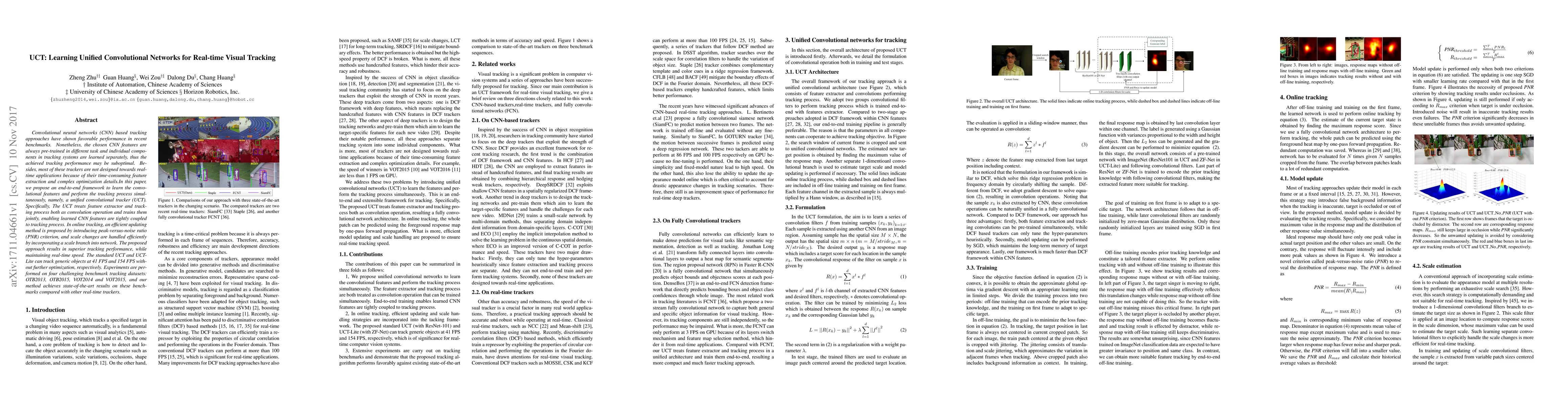 Convolutional neural networks (CNN) based tracking approaches have shown favorable performance in recent benchmarks. Nonetheless, the chosen CNN features are always pre-trained in different task and individual components in tracking systems are learned separately, thus the achieved tracking performance may be suboptimal. Besides, most of these trackers are not designed towards real-time applications because of their time-consuming feature extraction and complex optimization details.In this paper, we propose an end-to-end framework to learn the convolutional features and perform the tracking process simultaneously, namely, a unified convolutional tracker (UCT). Specifically, The UCT treats feature extractor and tracking process both as convolution operation and trains them jointly, enabling learned CNN features are tightly coupled to tracking process. In online tracking, an efficient updating method is proposed by introducing peak-versus-noise ratio (PNR) criterion, and scale changes are handled efficiently by incorporating a scale branch into network. The proposed approach results in superior tracking performance, while maintaining real-time speed. The standard UCT and UCT-Lite can track generic objects at 41 FPS and 154 FPS without further optimization, respectively. Experiments are performed on four challenging benchmark tracking datasets: OTB2013, OTB2015, VOT2014 and VOT2015, and our method achieves state-of-the-art results on these benchmarks compared with other real-time trackers.