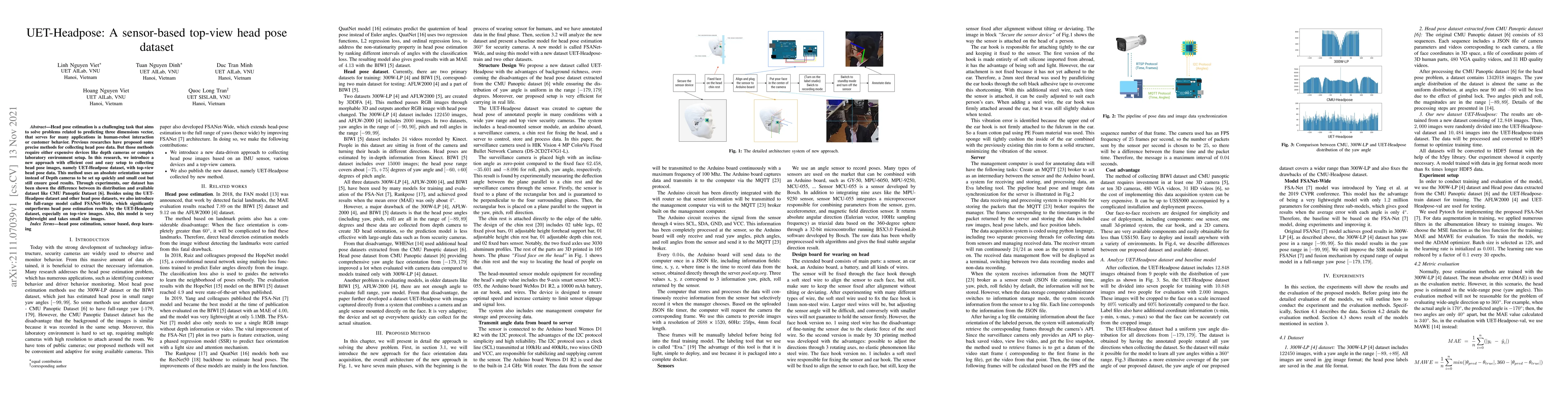 The research introduces UET-Headpose, a sensor-based top-view head pose dataset collected using an absolute orientation sensor, which is cost-effective and easy to set up. The dataset includes 12,848 images from 9 individuals with a uniform yaw angle distribution from -179 to 179 degrees.