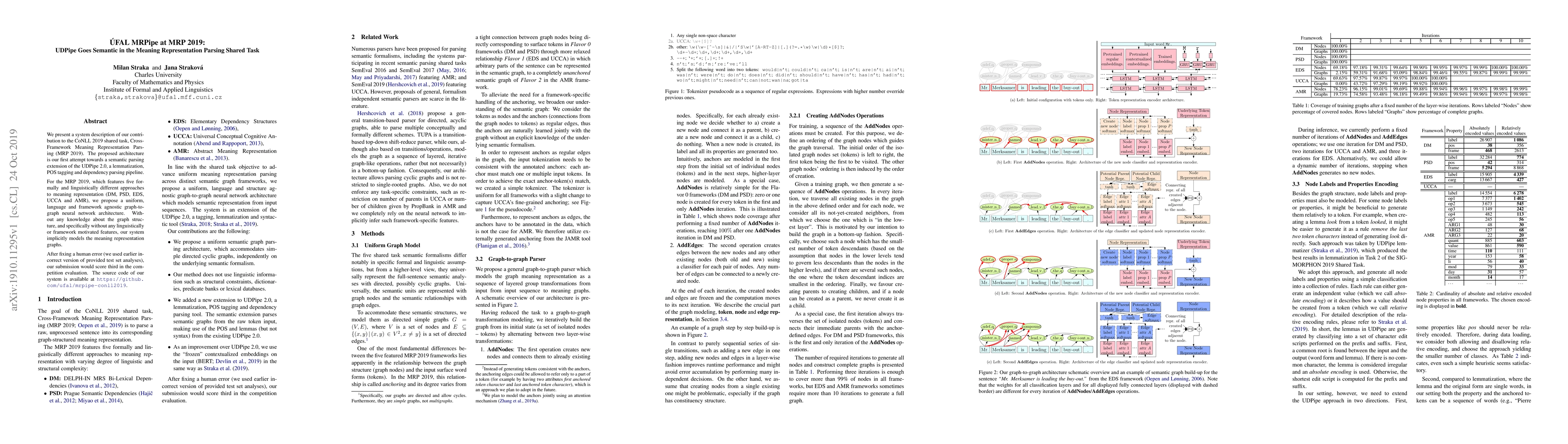 This paper describes UFAL MRPipe's contribution to the CoNLL 2019 MRP 2019 shared task, extending the UDPipe pipeline for semantic parsing. The system uses a uniform, graph-to-graph neural network architecture to implicitly model meaning representation graphs without relying on linguistic features, achieving third place after correcting an initial error.