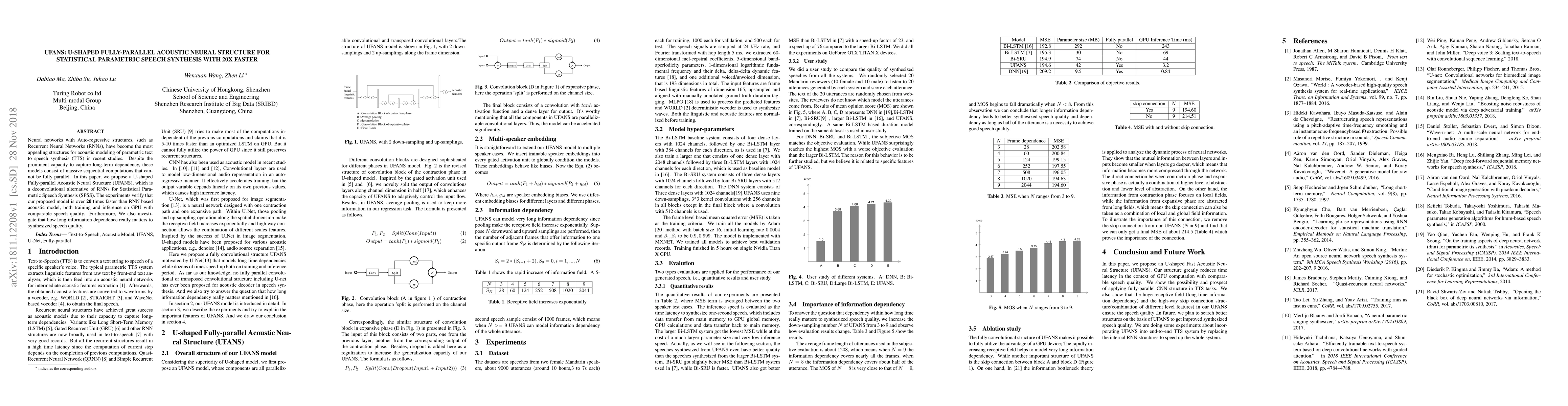 This paper proposes UFANS, a U-shaped Fully-parallel Acoustic Neural Structure, as a deconvolutional alternative to RNNs for Statistical Parametric Speech Synthesis (SPSS). The model achieves over 20 times faster training and inference speeds on GPUs compared to RNN-based models while maintaining comparable speech quality.