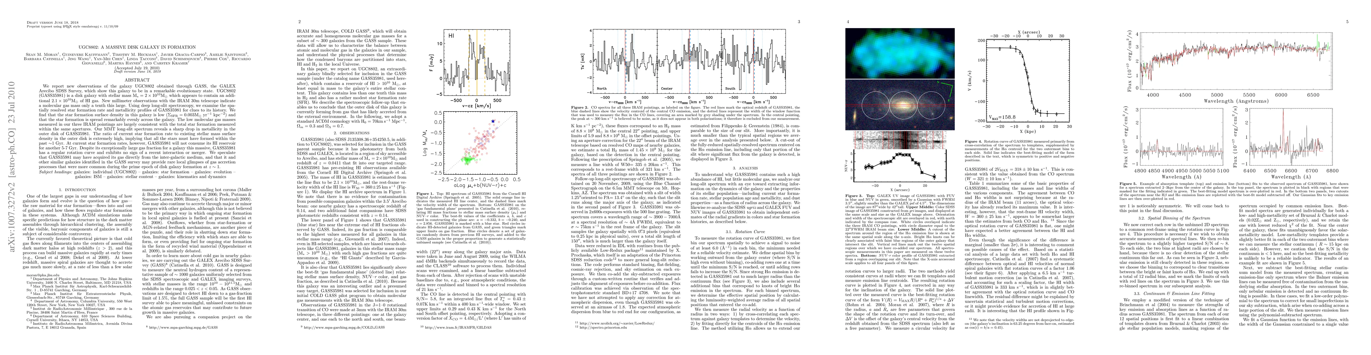 The research observes UGC8802, a massive disk galaxy in formation, with unusually high gas content and ongoing, evenly spread star formation. Despite its mass, it lacks signs of recent interaction or merger, suggesting it may have accreted gas directly from the inter-galactic medium, offering insights into early disk galaxy formation processes.