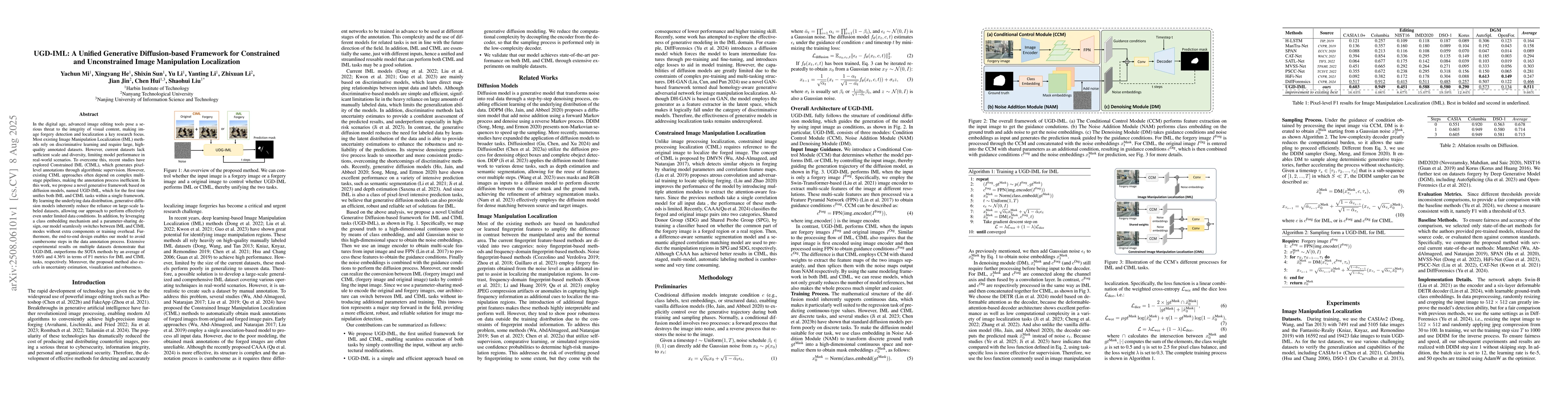 The paper proposes UGD-IML, a unified generative diffusion-based framework for both constrained and unconstrained image manipulation localization (IML) tasks. It leverages conditional diffusion models, integrating input images as conditions, and consists of three modules: Condition Control Module (CCM), Noise Addition Module (NAM), and Denoising Module (DM).
