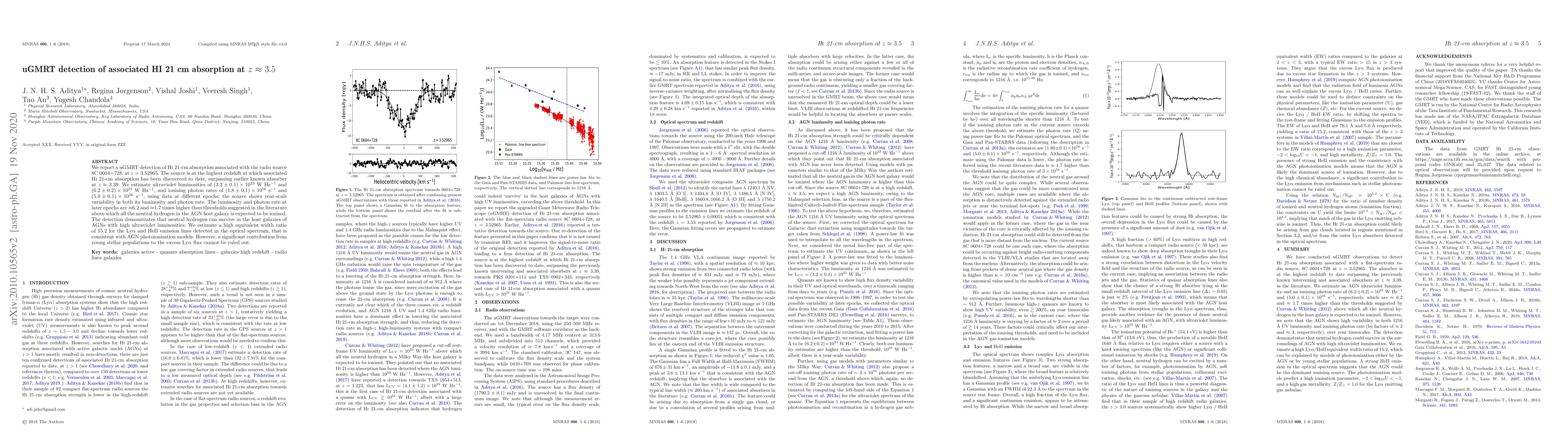 The research utilized uGMRT observations to detect HI 21-cm absorption associated with the radio source 8C 0604+728 at z ≈ 3.52965, combining present observations with those from Aditya et al. (2016).
