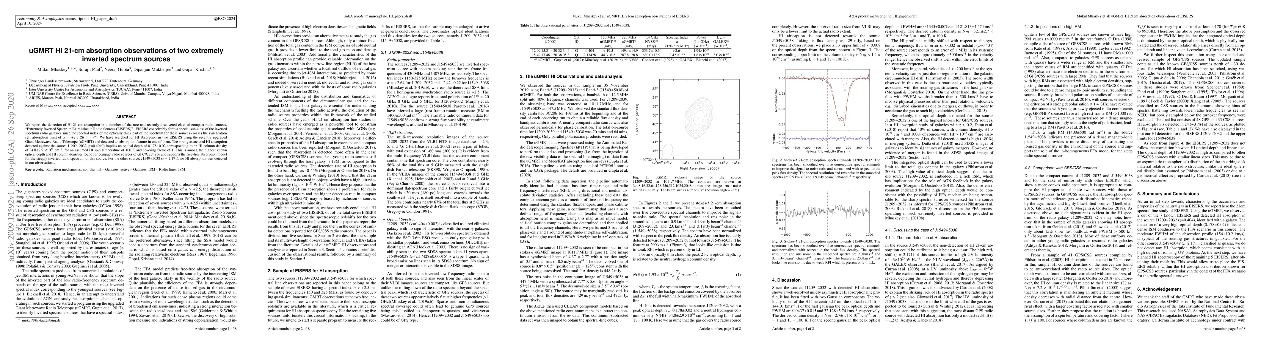 Researchers detected HI 21-cm absorption in an Extremely Inverted Spectrum Extragalactic Radio Source (EISERS), a rare class of compact radio sources, using the Giant Metrewave Radio Telescope.