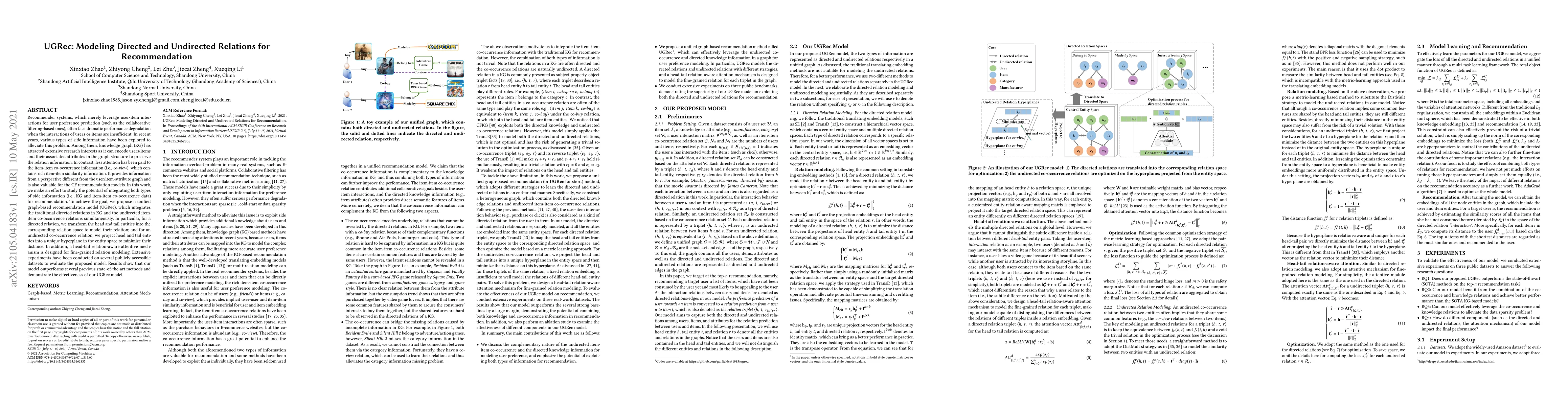Recommender systems, which merely leverage user-item interactions for user preference prediction (such as the collaborative filtering-based ones), often face dramatic performance degradation when the interactions of users or items are insufficient. In recent years, various types of side information have been explored to alleviate this problem. Among them, knowledge graph (KG) has attracted extensive research interests as it can encode users/items and their associated attributes in the graph structure to preserve the relation information. In contrast, less attention has been paid to the item-item co-occurrence information (i.e., \textit{co-view}), which contains rich item-item similarity information. It provides information from a perspective different from the user/item-attribute graph and is also valuable for the CF recommendation models. In this work, we make an effort to study the potential of integrating both types of side information (i.e., KG and item-item co-occurrence data) for recommendation. To achieve the goal, we propose a unified graph-based recommendation model (UGRec), which integrates the traditional directed relations in KG and the undirected item-item co-occurrence relations simultaneously. In particular, for a directed relation, we transform the head and tail entities into the corresponding relation space to model their relation; and for an undirected co-occurrence relation, we project head and tail entities into a unique hyperplane in the entity space to minimize their distance. In addition, a head-tail relation-aware attentive mechanism is designed for fine-grained relation modeling. Extensive experiments have been conducted on several publicly accessible datasets to evaluate the proposed model. Results show that our model outperforms several previous state-of-the-art methods and demonstrate the effectiveness of our UGRec model.
