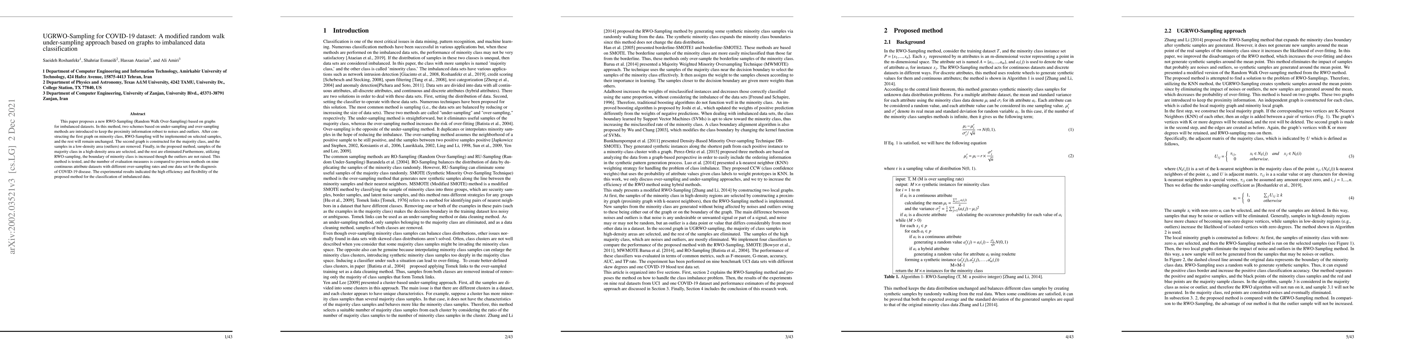 This paper introduces a novel RWO-Sampling method based on graph construction for classifying imbalanced datasets, balancing under-sampling and over-sampling to maintain data robustness. The method shows improved performance over previous techniques in classifying imbalanced COVID-19 datasets.