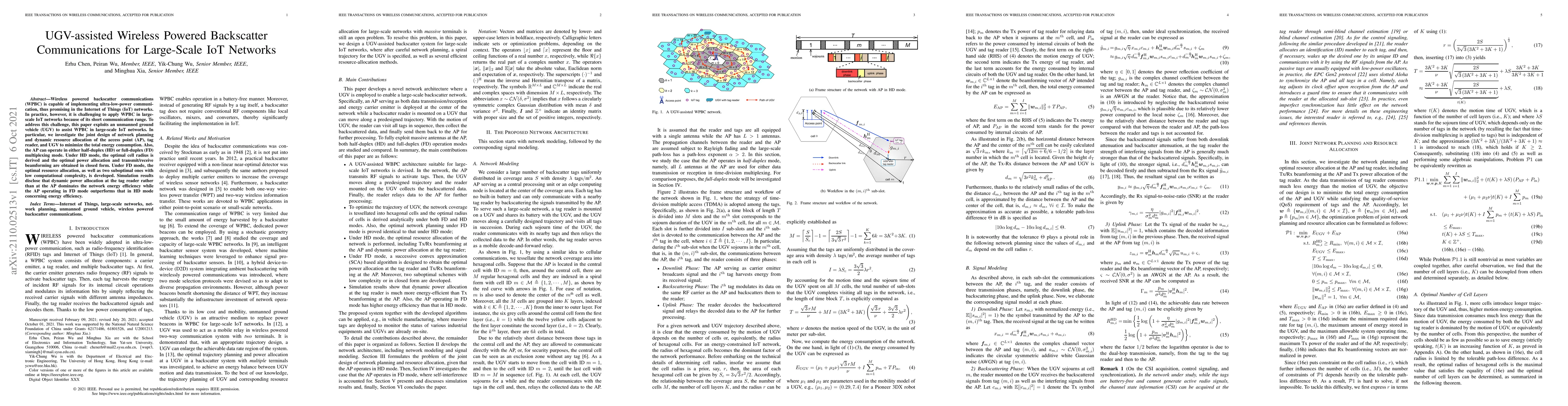 This paper explores using an unmanned ground vehicle (UGV) to enhance wireless powered backscatter communications (WPBC) in large-scale IoT networks, addressing the challenge of WPBC's short range. It investigates joint network planning and dynamic resource allocation to minimize energy consumption, comparing half-duplex and full-duplex modes, and finds that dynamic power allocation at the tag reader and full-duplex mode improve energy efficiency.