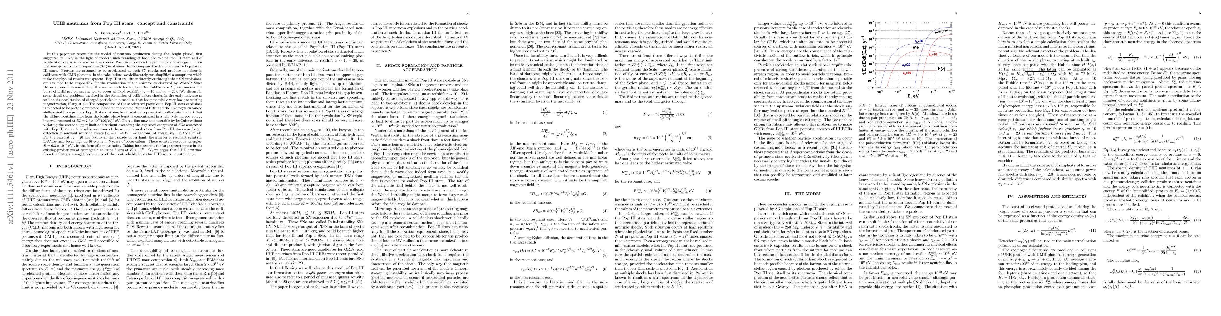 This paper revisits the 1977 model of neutrino production during the 'bright phase' of Population III stars, focusing on ultra-high energy (UHE) neutrinos from supernovae. It suggests that these neutrinos could be detectable by IceCube, providing a potential signature of early universe particle acceleration.