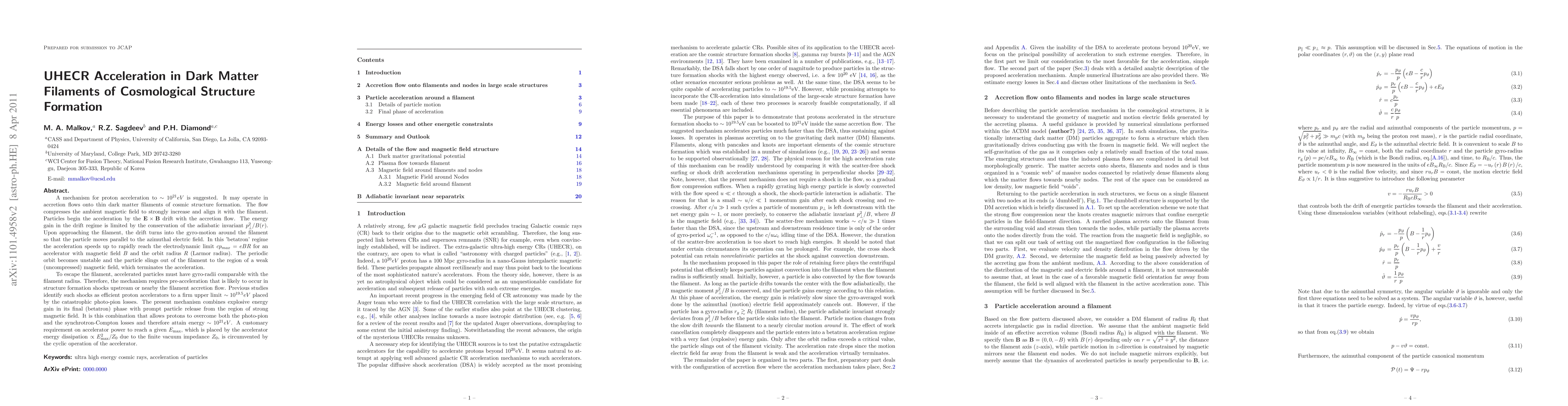 A mechanism for proton acceleration to ~10^21eV is suggested. It may operate in accretion flows onto thin dark matter filaments of cosmic structure formation. The flow compresses the ambient magnetic field to strongly increase and align it with the filament. Particles begin the acceleration by the ExB drift with the accretion flow. The energy gain in the drift regime is limited by the conservation of the adiabatic invariant p_perp^2/B. Upon approaching the filament, the drift turns into the gyro-motion around the filament so that the particle moves parallel to the azimuthal electric field. In this 'betatron' regime the acceleration speeds up to rapidly reach the electrodynamic limit $cp_{max}=eBR$ for an accelerator with magnetic field $B$ and the orbit radius $R$ (Larmor radius). The periodic orbit becomes unstable and the particle slings out of the filament to the region of a weak (uncompressed) magnetic field, which terminates the acceleration. The mechanism requires pre-acceleration that is likely to occur in structure formation shocks upstream or nearby the filament accretion flow. Previous studies identify such shocks as efficient proton accelerators to a firm upper limit ~10^19.5 eV placed by the catastrophic photo-pion losses. The present mechanism combines explosive energy gain in its final (betatron) phase with prompt particle release from the region of strong magnetic field. It is this combination that allows protons to overcome both the photo-pion and the synchrotron-Compton losses and therefore attain energy 10^21 eV. A requirement on accelerator to reach a given E_max placed by the accelerator energy dissipation \propto E_{max}^{2}/Z_0 due to the finite vacuum impedance Z_0 is circumvented by the cyclic operation of the accelerator.